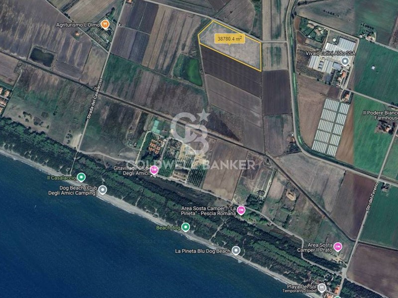 A soli 900 metri dalle spiagge di Costa Selvaggia, a Pescia Romana, terreno di quasi 4 ettari totalmente pianeggiante.
