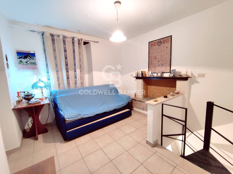L'appartamento è posto al piano terra e si sviluppa su due livelli: al piano terra cucina abitabile con cucina in muratura e bagno; al piano primo, al quale si accede da una scala interna in ferro, soggiorno con camino, camera matrimoniale e bagno.