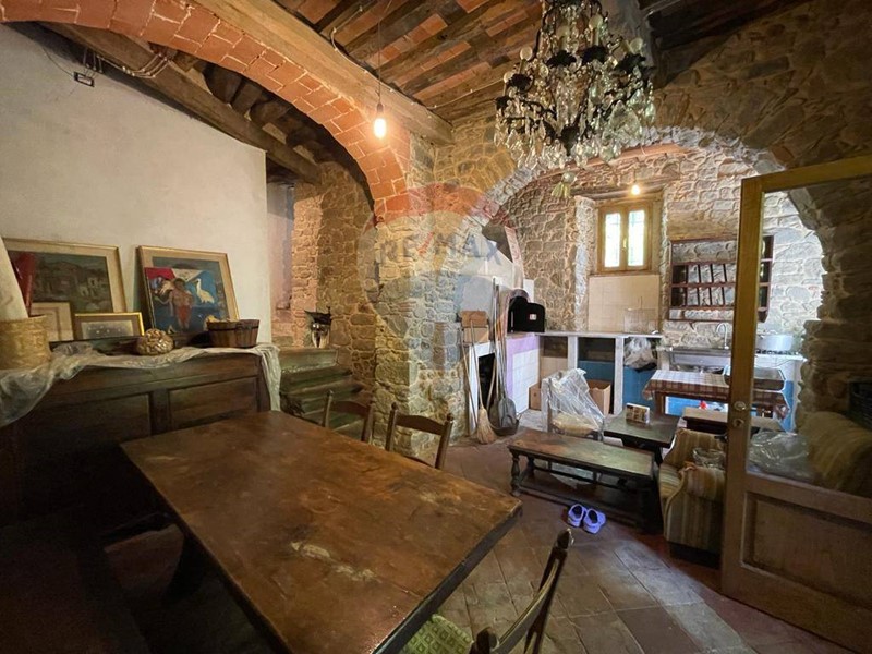 Si accede da resede di proprietà direttamente su ingresso che conduce alla sala da pranzo con bellissimo camino collegata al soggiorno, al cucinotto e piccolo ripostiglio con wc.