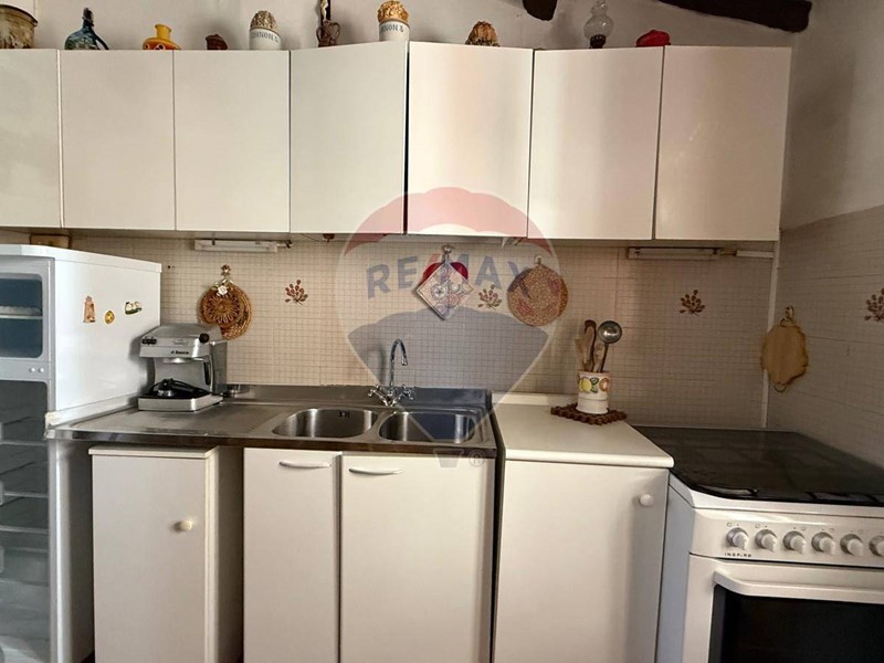 Cucina spaziosa con accesso al sottotetto, dove è collocata la caldaia.