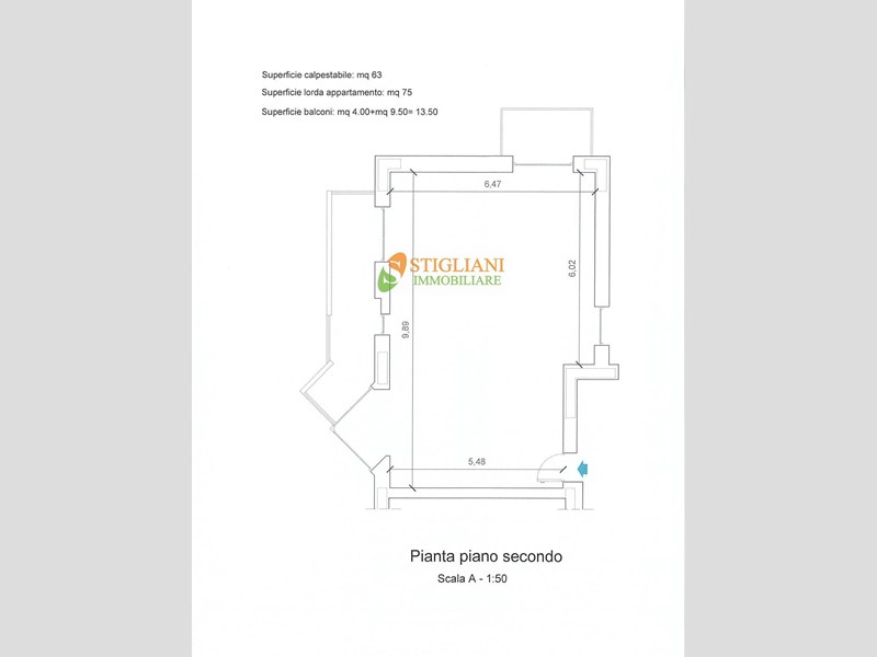 - app.to 2° piano di mq 75 + mq 14 di balcone;