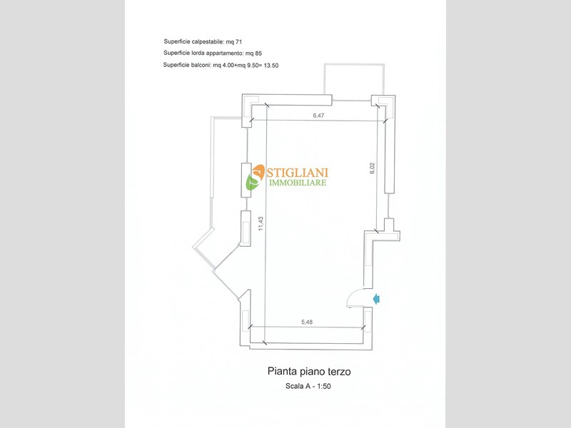 - app.to 3° piano di mq 85 + mq 14 di balcone;