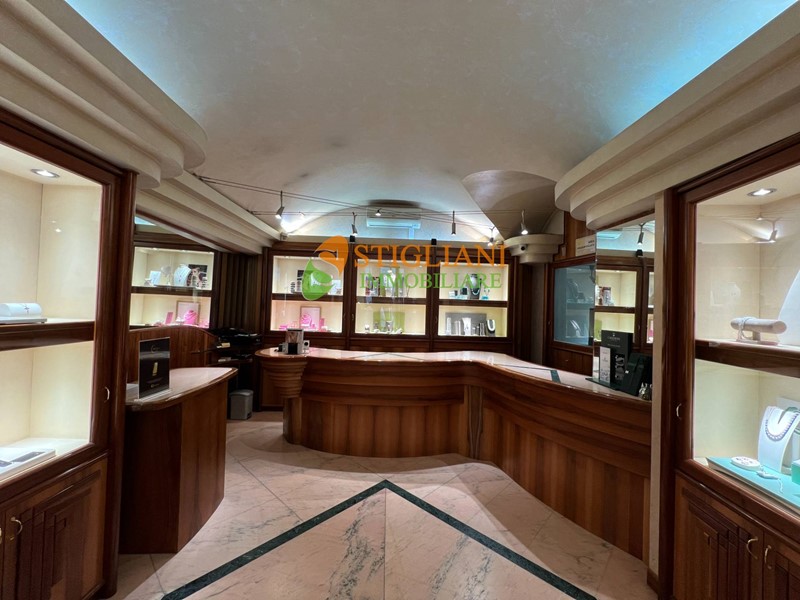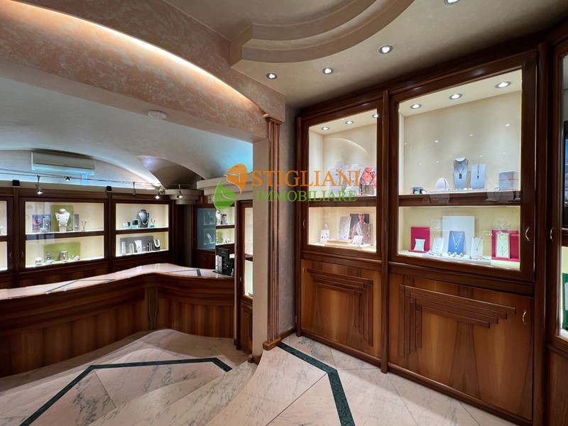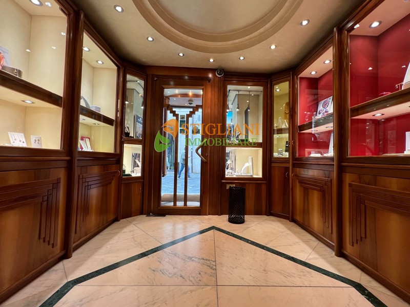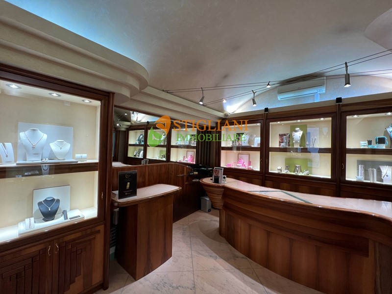 Centralissima e avviatissima attività di gioielleria/oreficeria in locale commerciale di metri quadrati 40 circa, completamente ristrutturato e arredato con mobili in noce massello, e con bagno nel retro. Luci a led, ingresso unico e due vetrine antisfondamento fronte strada e una laterale con vetri antiproiettile. Impianto di allarme e videosorveglianza notturna, condizionamento caldo/freddo. Nel prezzo non è inclusa la merce. Regolare contratto di affitto commerciale con canone pari a 900,00 mensili.