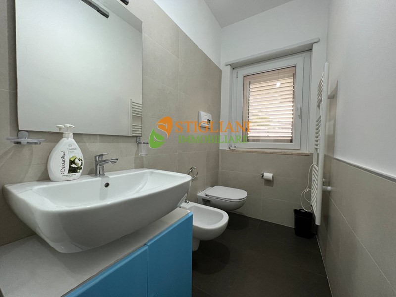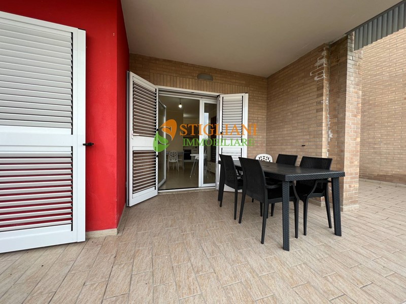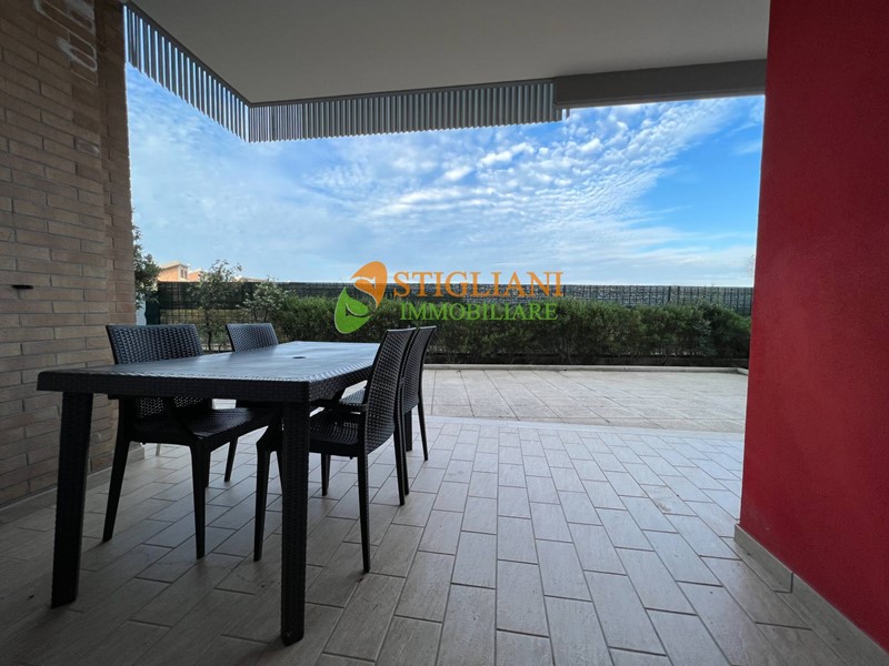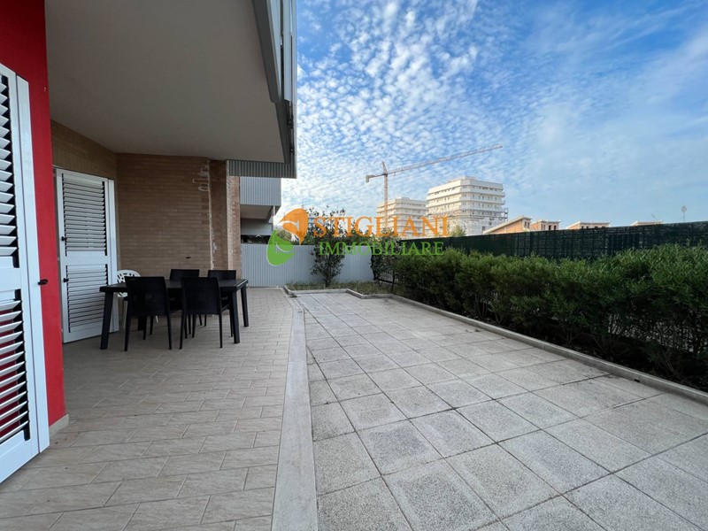 In fabbricato di nuova costruzione direttamente sul mare, appartamento arredato al piano terra, di metri quadrati 80 circa, composto da cucina-soggiorno, due camere da letto, bagno e giardino di proprietà di metri quadrati 50 circa, in parte pavimentato e con ripostiglio/lavanderia esterno, possibilità di posto auto recintato. Finiture di pregio, aria condizionata, infissi a taglio termico e portone d'ingresso blindato.