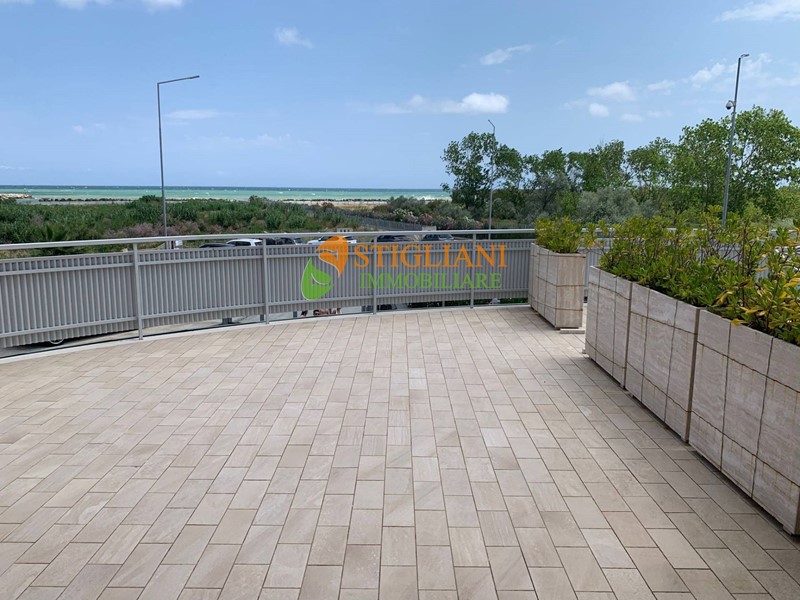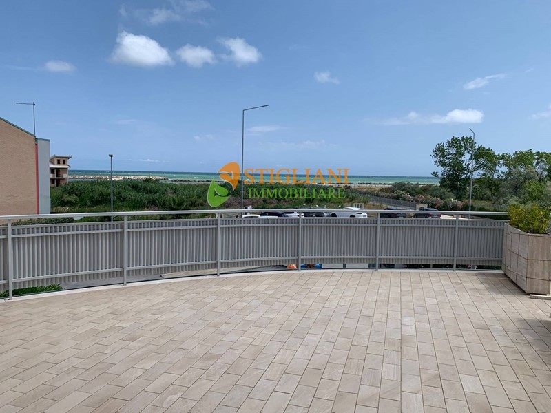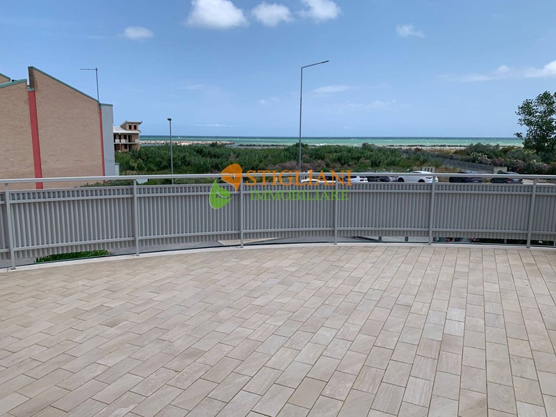 Riva del Mulino, in fabbricato di nuova costruzione sul mare, appartamento arredato al piano primo, di metri quadrati 70 circa e composto da: ingresso, cucina-soggiorno, disimpegno, due camere, bagno, ampio terrazzo vista mare con punto acqua e posto auto esterno.