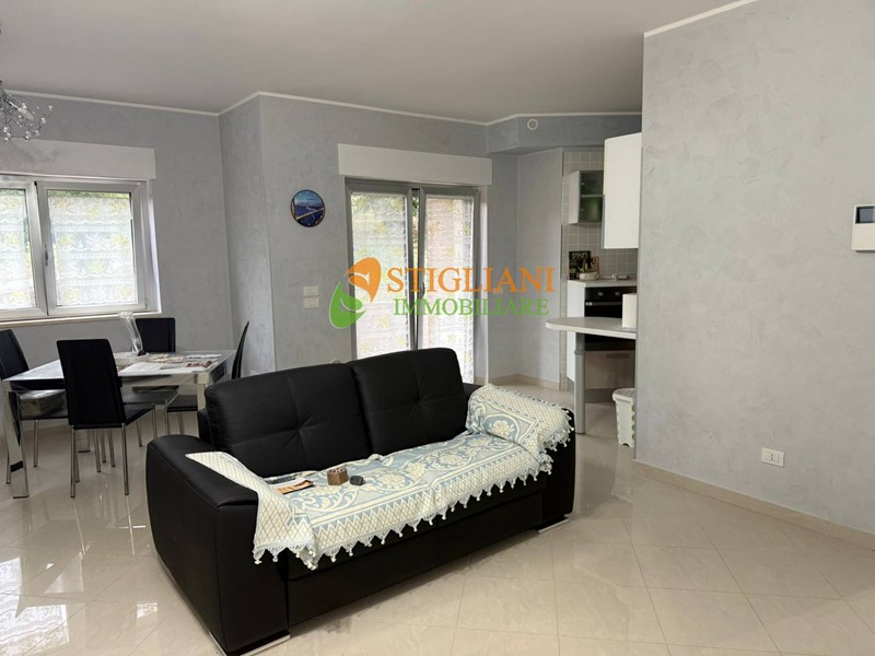 In zona residenziale e a pochi minuti dal centro, appartamento in immobile di recente costruzione, di metri quadrati 120 circa e posto al piano primo servito da ascensore, composto da cucina-soggiorno, tre camere da letto, due bagni, terrazzo, tre balconi, cantina e garage. Impianto di riscaldamento a pavimento. L'immobile si vende arredato come nelle foto.