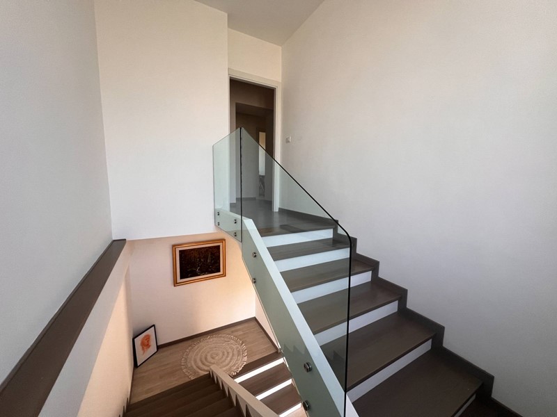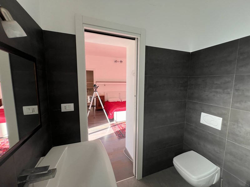 Primo Piano: disimpegno, elegante camera padronale con cabina armadio e bagno privato, due ulteriori camere da letto con cabine armadio, terzo bagno, lavanderia e balconi con vista sulla campagna circostante.