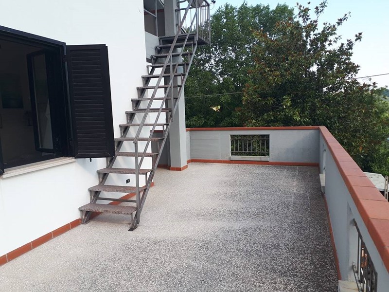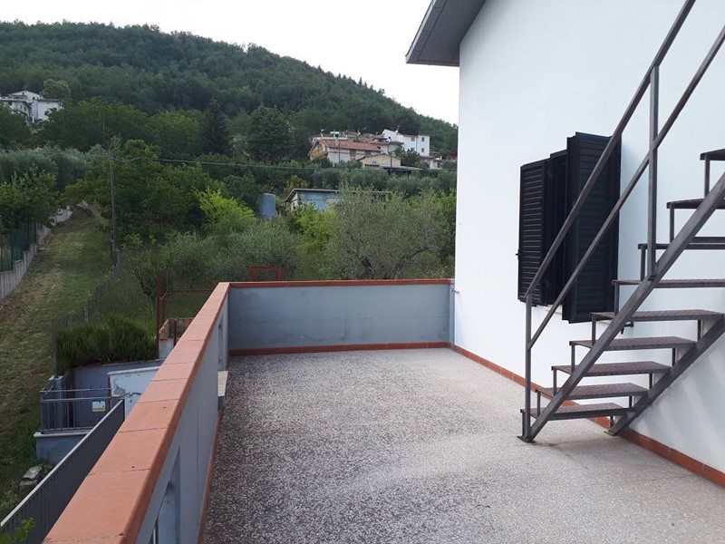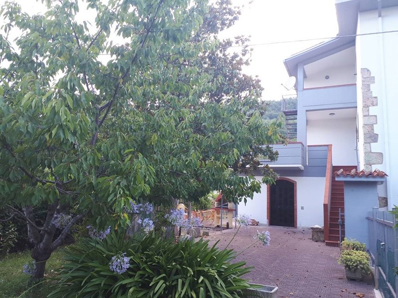 Civitella del Tronto - Nella frazione Rocche di Civitella lungo Via Nazionale, proponiamo porzione di bifamiliare in vendita con area privata e terreno attiguo. La proprietà è composta da locali al piano terra adibiti a taverna con termocamino, con possibilità di alimentarlo anche a gas, cucina a vista, una camera, uno studio, un bagno, un magazzino e un vano pluriuso. Il piano terra gode di un'ampia area perimetrale in buona parte pavimentata e un grazioso giardino nella parte anteriore dell'immobile. Al primo piano troviamo l'appartamento principale accessibile sia dal piano terra con comoda scala interna e sia tramite scalinata esterna. Lìimmobile è composto da soggiorno con camino, cucinotto, tre camere, 2 bagni, vano lavanderia e comoda terrazza perimetrale. Al piano superiore troviamo un locale sottotetto praticabile raggiungibile tramite scala esterna. Nell'area posteriore privata troviamo un locale rimessaggio coperto dove è possibile parcheggiare più auto e un rimessaggio legna. Nella proprietà ci sono anche due pozzi con vene d'acqua differenti Completano la proprietà un terreno attiguo, eventualmente edificabile di circa 1.800 mq. L'immobile è in ottime condizioni, termoautonomo, infissi in metallo con doppi vetri e persiane esterne in metallo con alette regolabili. APE in fase di definizione