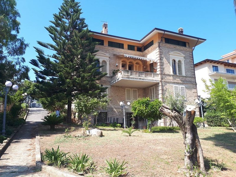 Giulianova - Viale dello Splendore - Villa storica con pregevole vista mare e giardino di oltre 1.600 mq. L'immobile, frutto di una totale ristrutturazione negli anni 80 e di una manutenzione regolare, si presenta in perfette condizioni, pronta per essere abitata da subito. Posizionata in una delle vie residenziali più belle e signorili della parte alta di Giulianova a soli 2 Km dal mare e vicino a tutti i servizi. Grazie all'esposizione su quattro lati, la luce naturale illumina ogni stanza, creando un'atmosfera accogliente e luminosa. L'edificio è disposto su 2 piani fuori terra oltre ad un ampio piano seminterrato di circa 130 mq adibito a taverna, cucina, servizi, dispensa, caratterizato da archi e volte a mattoni con uscita sul parco privato dalla quale ammirare un panorama mozzafiato. Gli spazi interni sono ripartiti da un piano rialzato, composto da ingresso, ampio salone servito da un terrazzo con vista mare, studio, soggiorno, cucina, vano tv, camera padronale con vano guardaroba e bagno privato. Piano primo composto da 4 camere, 4 bagni, vano lavanderia. Nella parte laterale con ingresso autonomo e area esterna dedicata, troviamo un altro appartamento composto da soggiorno, cucina abitabile, 2 camere, doppi servizi, vano lavanderia. La proprietà è circondata da un ampio giardino, perfetto per godersi momenti di relax all'aria aperta o per organizzare pranzi e cene con amici e familiari e godere del panorama circostante. Lo stato di conservazione più che buono, con finiture di alta qualità ne preservano l'aspetto originale. Gli infissi e le finestre in metallo con doppi vetri offrono una buona insonorizzazione e un'ottima isolamento termico, parquet, portone blindato. L'immobile è dotato anche di un sistema di allarme per garantire la sicurezza dei suoi abitanti. Un'opportunità unica per chi desidera acquistare una villa di prestigio in una delle zone più belle e panoramiche di Giulianova, APE in fase di definizione.
