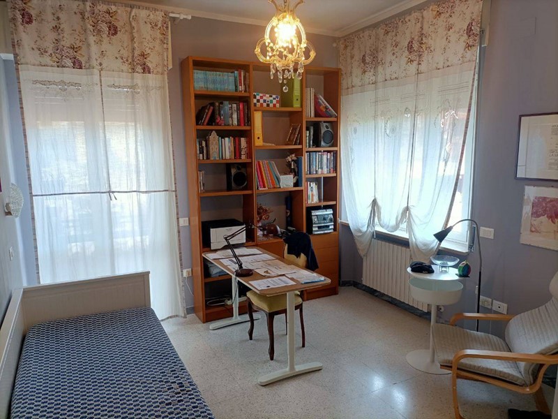 Gli ampi spazi interni sono distribuiti su 5 locali: una cucina abitabile luminosa e accogliente, soggiorno, sala da pranzo, due camere da letto, spaziose e ben illuminate, uno studio, bagno con doccia e wc, ristrutturato interamente nel 2010.