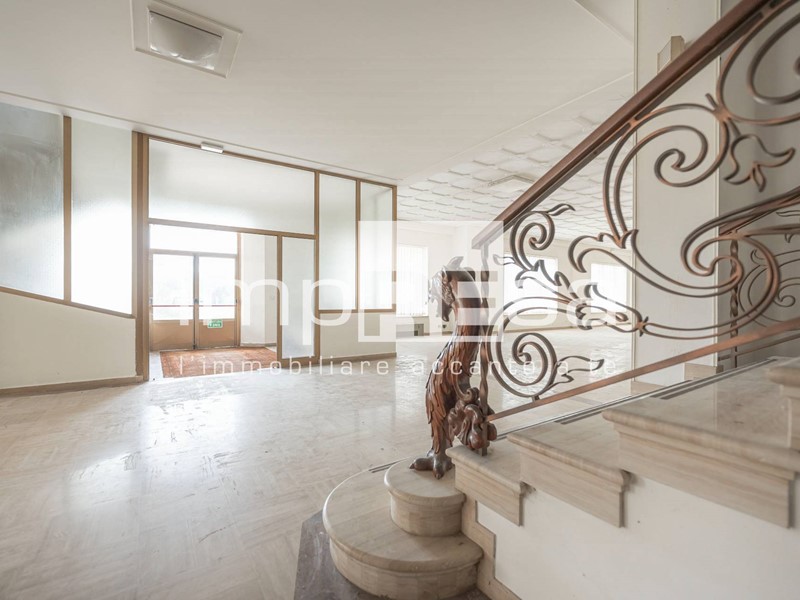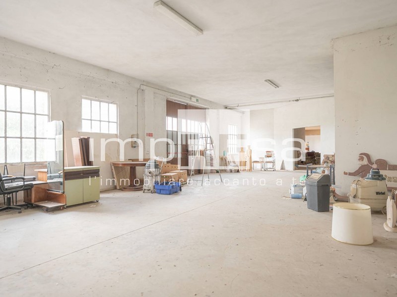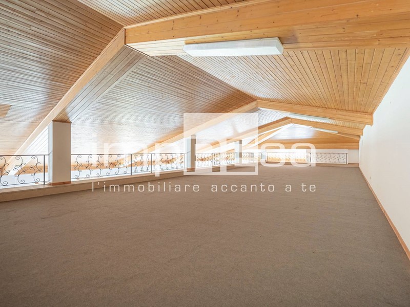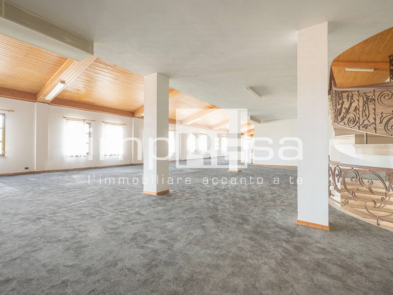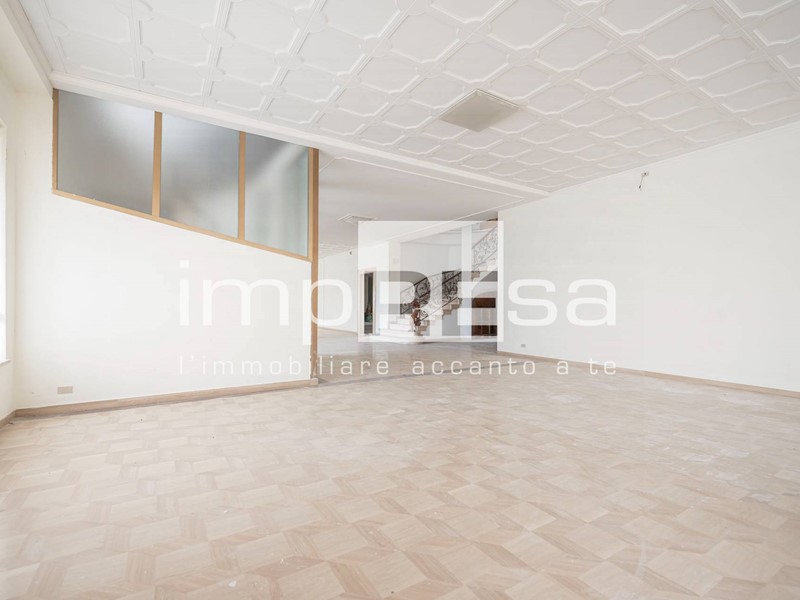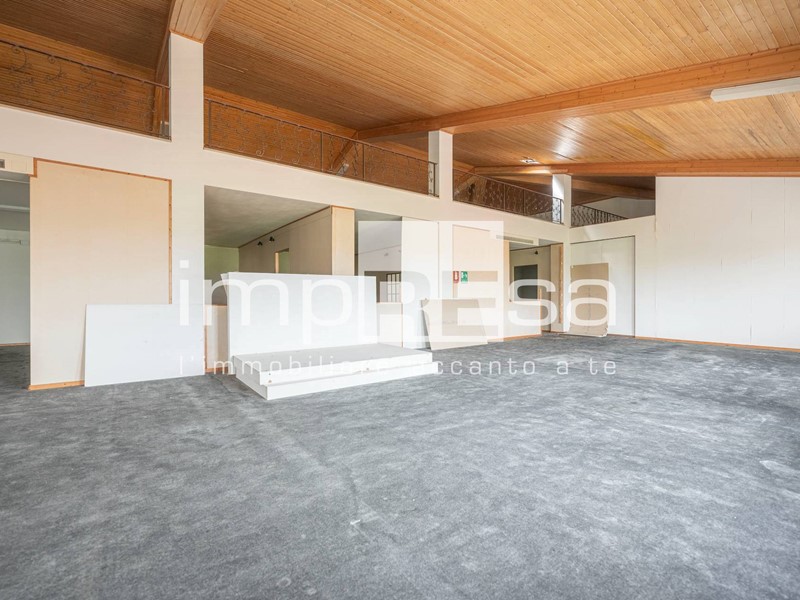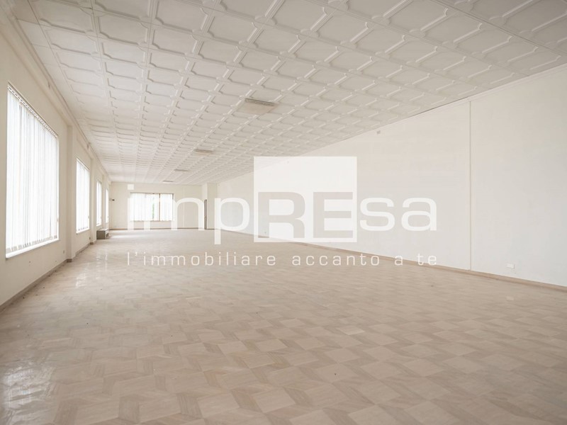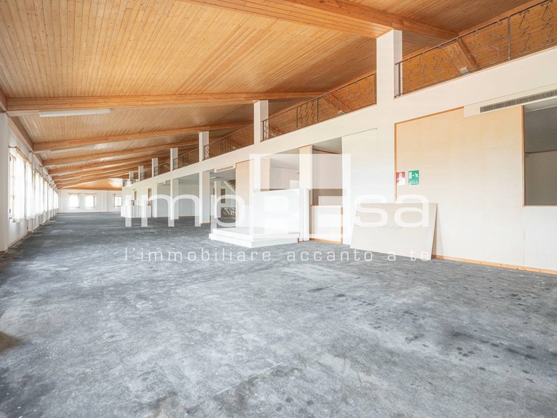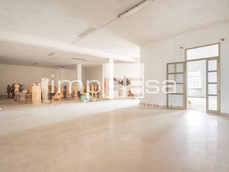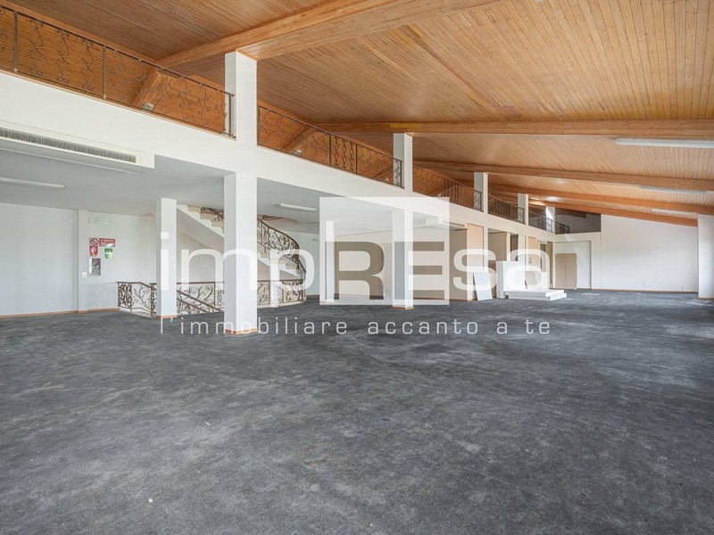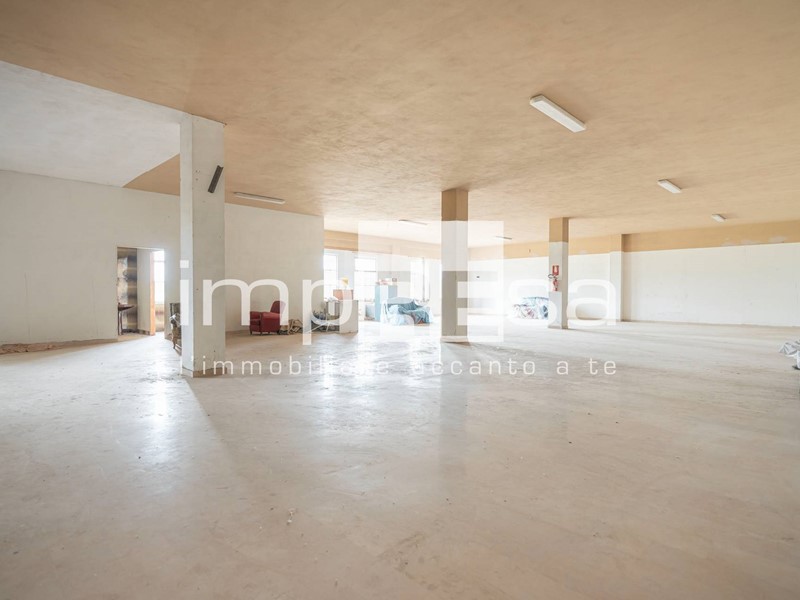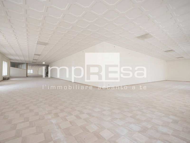 L'immobile sviluppato su 2 piani fuori terra, al piano rialzato troviamo l'ingresso dal quale si accede al locale principale a forma di "L" di 490mq con 10 vetrine lato sud e 4 lato est, ufficio di 24mq, due stanze con accessi separati attualmente utilizzate come magazzini corrispettivamente di 200mq e 296mq, retro negozio di 129mq, ed 4 servizi igienici.Salendo le scale presenti di fronte all'ingresso si accede al openspace di 745mq ove sono presenti 3 stanze, separate da muri in cartongesso, continuando le scale si arriva al soppalco di 373mq.