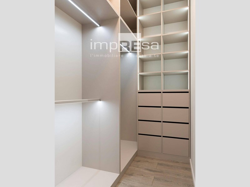 L'immobile si sviluppa in una zona giorno openspace che accoglie un'elegante fusione tra salotto, zona pranzo e cucina; quest'ultima può essere separata a piacere.