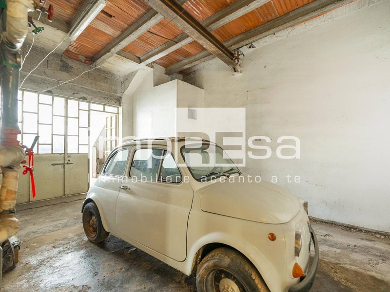 La seconda porzione, al piano terra è composta da tre magazzini e centrale termica per un totale di circa 60 mq, mentre al piano primo troviamo una zona giorno di 26 mq, un bagno con disbrigo e un terrazzo di 6 mq.