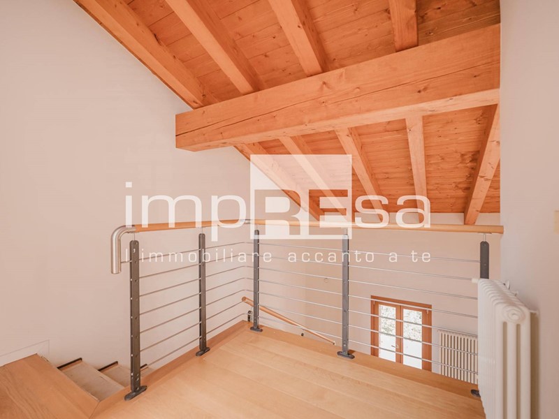 Vendiamo luminoso appartamento duplex, piano primo e secondo, ingresso su ampia zona giorno con cucina a vista e bella loggia coperta per spaziare con lo sguardo verso i verdi colli e la Rocca, disimpegno, camera e bagno. Al secondo piano salendo una comoda scala il disimpegno ci conduce in due ampie camere e un bagno tutto travato a vista. Garage doppio e magazzino completano l'immobile. Il complesso residenziale gode inoltre di ampi spazi verdi, giardini romantici e frutteto per vivere il fascino della collina asolana con i suoi magnifici scorci.