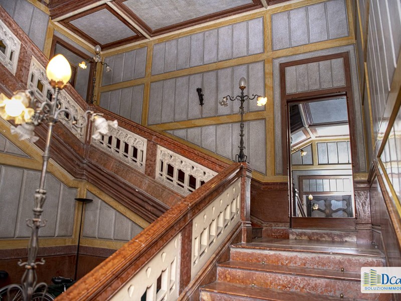 La sala dingresso è centrale rispetto alle stanze che prendono luce da uno o più balconi o dal terrazzo. Tutti i vani, tranne i servizi che nel tempo sono stati ristrutturati, sono perfettamente integri con i pavimenti, le porte e i magnifici affreschi, tutti allo stato originario, che ci riportano come per magia a quellatmosfera perduta che fu chiamata La belle époque. Lappartamento si può visitare previo appuntamento da fissare in agenzia.