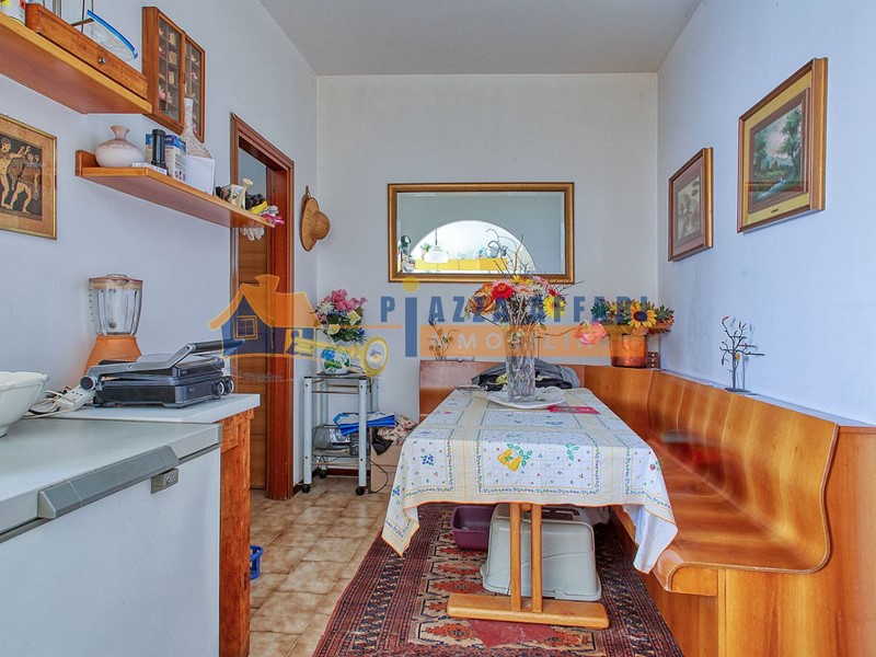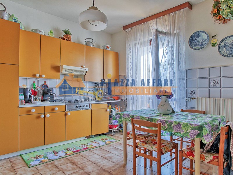 La cucina abitabile è altrettanto generosa: comoda, funzionale e pensata per la convivialità, talmente spaziosa da ospitare due tavoli e laccesso diretto al secondo balcone. Un pratico bagno di servizio completa la zona giorno.