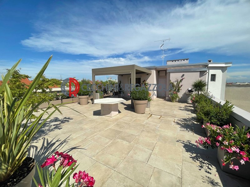 L'appartamento, completamente ristrutturato con materiali di pregio, è circondato da un magnifico terrazzo di circa 150 mq, piantumato e dotato di impianto automatico di irrigazione.