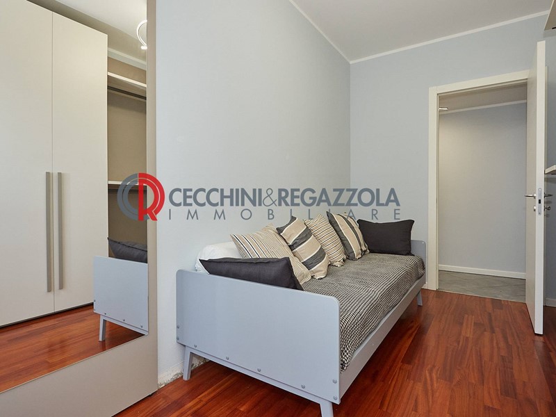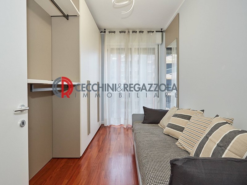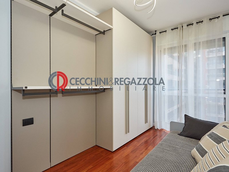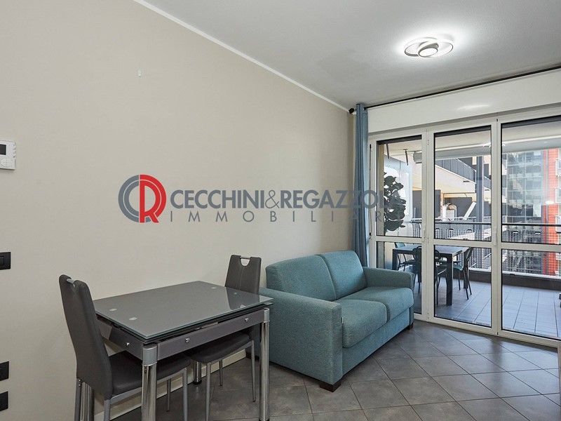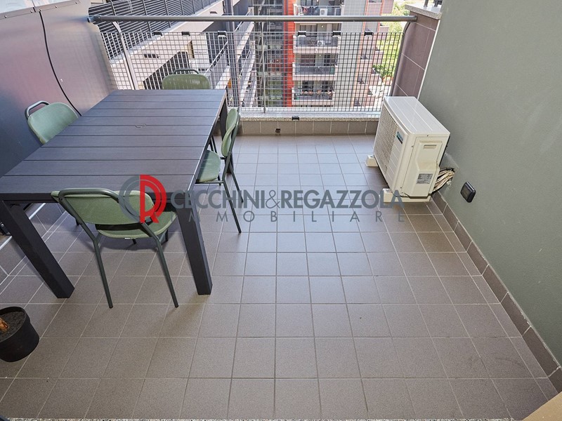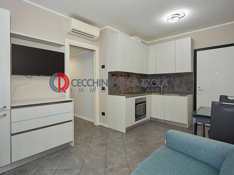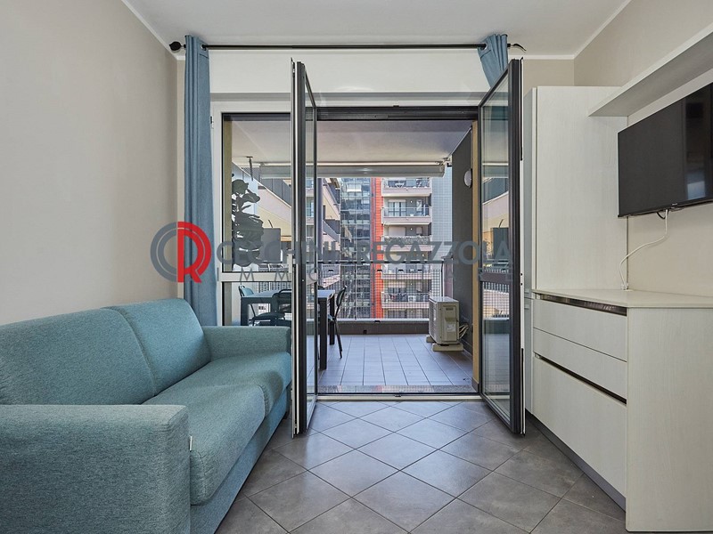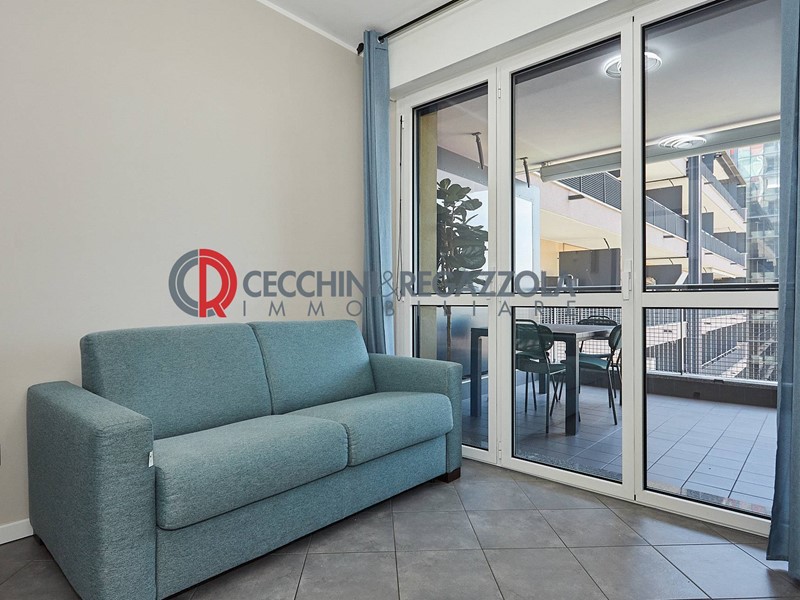 Lappartamento è arredato finemente con mobili su misura e presenta finiture di alta qualità con dotazioni di livello superiore alla media. Si compone di soggiorno con cucina a vista, affacciati su un ampio e grazioso terrazzino abitabile dotato di tavolo, sedie e tenda da sole motorizzata. La cucina completamente arredata è completa di tutti gli elettrodomestici lavastoviglie compresa. Il soggiorno ha in dotazione una Smart TV a parete. Le camere sono due, entrambe luminose, una, con letto matrimoniale con contenitore per coperte ecc. regolabile con telecomando elettrico e capiente armadio con ante scorrevoli oltre ad una comoda cassettiera. La seconda è una camera singola con finestra a tutta altezza arredata con letto e armadio su misura.