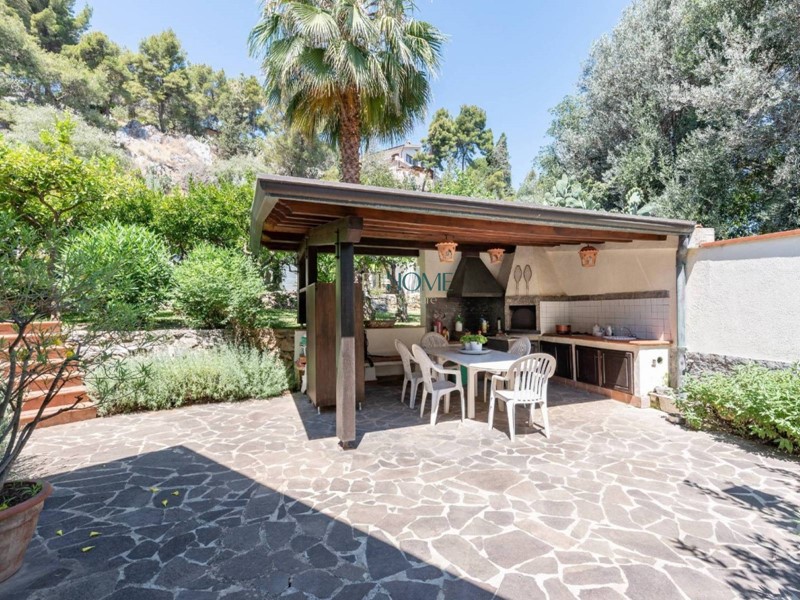 La proprietà ricopre una superficie di circa 500 Mq, disposti su tre livelli, comunicanti tra loro attraverso scala interna; all'interno sono presenti sei camere da letto, ognuna con affaccio su terrazza, ampie zone living, una cucina abitabile e cinque servizi igienici. I materiali di costruzioni sono pregiati e di eccelsa qualità, conferendo all'immobile un gusto raffinato ed elegante. Il punto nevralgico della proprietà è certamente l'area esterna esclusiva, abbellita da vialetti in pietra che conducono ad un'ampia zona barbecue, alla terrazza coperta, alla dépendance, che si presta perfettamente ad accogliere amici e familiari, ed infine ad una piscina interamente scavata nella montagna che offre agli occhi un panorama mozzafiato grazie al suo azzurro intenso che contrasta con la vegetazione circostante. L'ubicazione dell'immobile consente di raggiungere facilmente le zone di maggiore fascino attrattivo in prossimità città, quali: (in direzione Trapani) Mondello, Addaura, Sferracavallo, isola delle Femmine, Cinisi, Terrasini, Alcamo, Castellammare del Golfo e (in direzione Catania -Messina), Altavilla Milicia, Termini Imerese, Cefalù.
