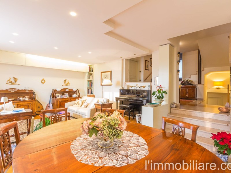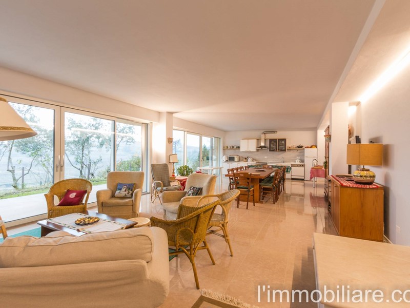 La casa si sviluppa su 2 livelli principali più la zona ad accessori al piano seminterrato; PT ingresso, studio, cucina, salone che affaccia su un ampio terrazzo di 130 mq con stupenda vista sulle colline circostanti, sala da pranzo, servizio e lavanderia; P1 con 4 camere di cui 2 con soppalco, 3 bagni, 3 balconi ed una loggia; P. Semint. locale multiuso di 70 mq con ampie vetrate che affaccia su un secondo terrazzo di 40, servizio (questi locali sono stati realizzati recentemente), taverna di 130 mq, stanza degli ospiti, ulteriore servizio, centrale termica, cantina di 40 mq e garage comodo per 3 auto di 50 mq. Giardino di c.a 500 mq.