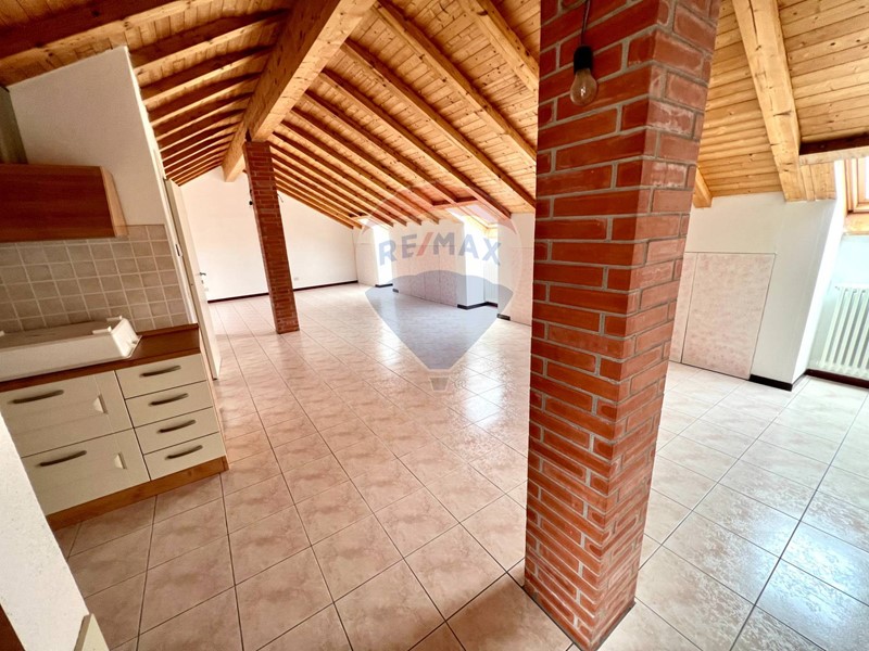 Al secondo piano abbiamo un unico grande ambiente non ancora diviso, sarà quindi personalizzabile a vostro piacimento. Al momento è presente un bagno con anti-bagno e una cucina a vista. Pur essendo mansardato le altezze non saranno un problema in quanto l'altezza media è di 2,30 metri.