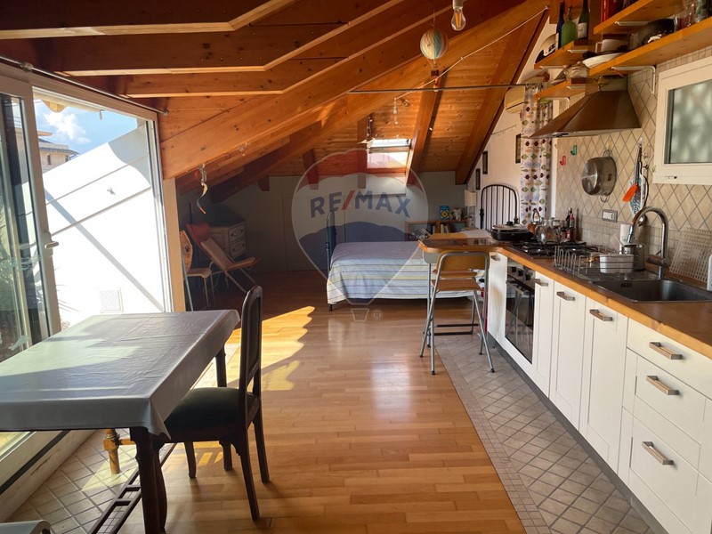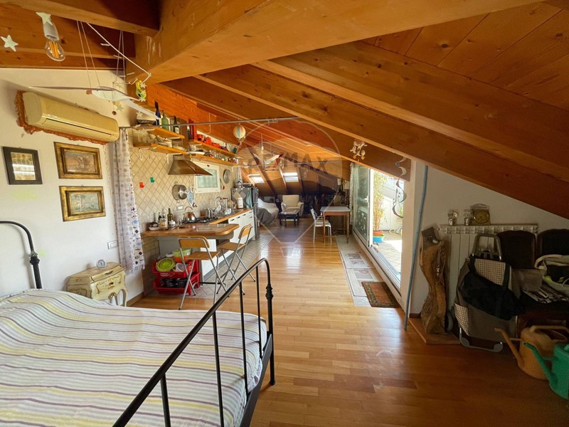 Nell'ampio open space che ospita soggiorno e cucina a vista, attualmente troviamo una zona notte con letto matrimoniale.