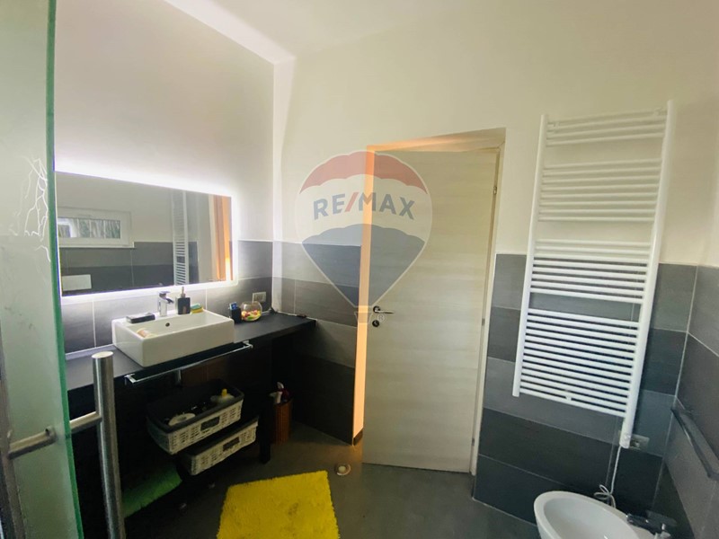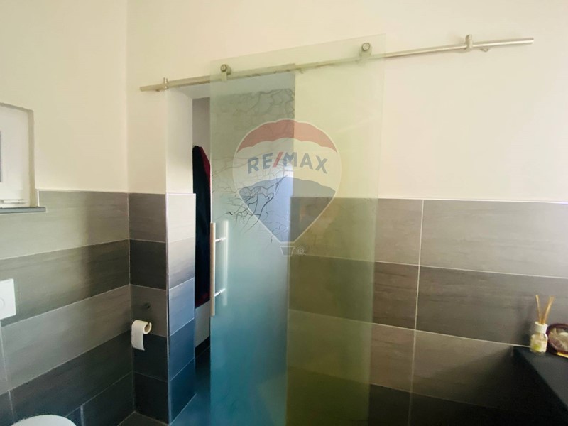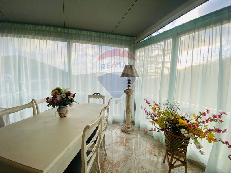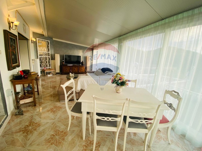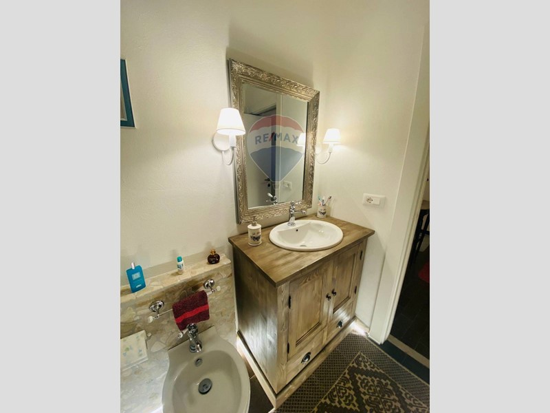 Al primo piano troviamo una camera da letto, un'altra cameretta con armadi, un bagno con doccia rifatto con materiali di pregio, un ripostiglio e una balconata abitabile che gira intorno alla casa per 160 gradi.