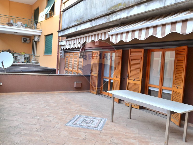 Si tratta di un appartamento che affaccia, grazie al vasto terrazzo, sulla via principale (via Angelo Grilli), ma l'entrata è in via Marrè.