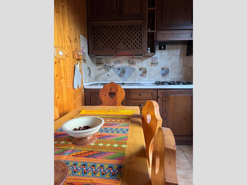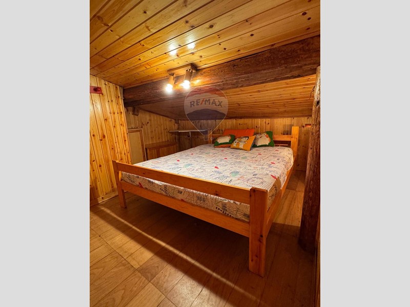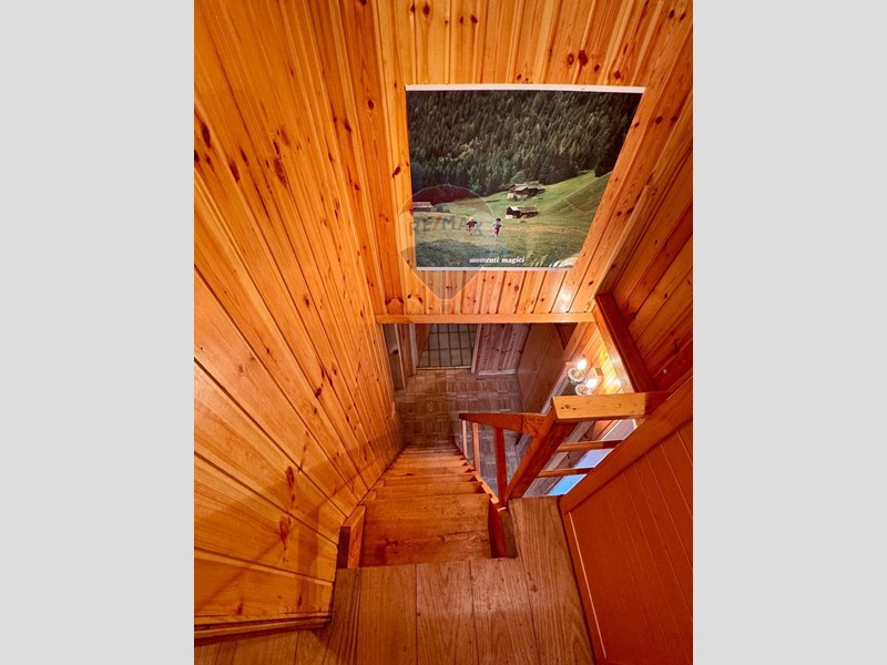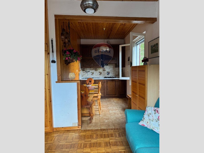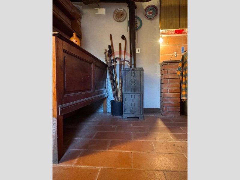La scala esterna in pietra, conduce all'appartamento. Entrando troviamo sulla destra il soggiorno con camino e cucina a vista e sempre al piano la camera matrimoniale e il bagno con doccia.