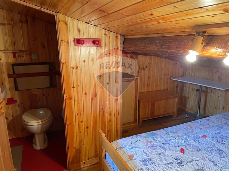La scala interna in legno ci porta al piano superiore dove troviamo una seconda camera e un piccolo bagno mansardati.
