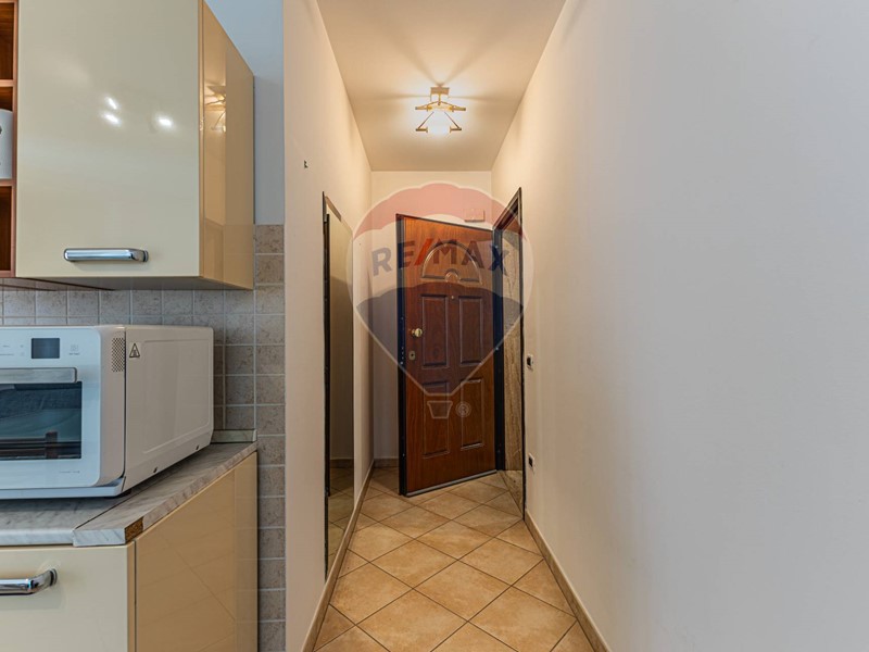 Gli ambienti sono così disposti: ingresso, soggiorno con cucina a vista e uscita sulla già citata terrazza, camera singola, camera matrimoniale, bagno dotato di doccia, il tutto moderno e funzionale.