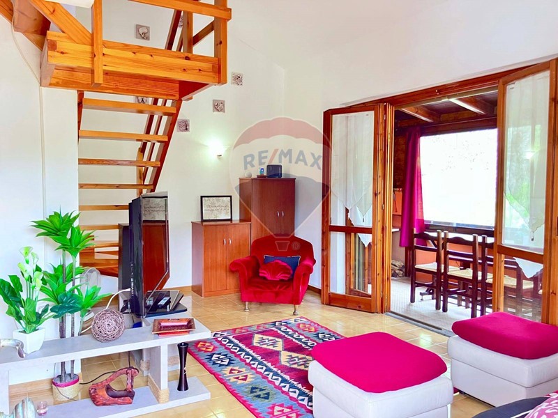 L'immobile semindipendente al 1°piano, costruito nel 1990, si presenta in buono stato di conservazione e offre 73 metri quadrati su due piani. L'ingresso si apre su un ampio e accogliente soggiorno dotato di un comodo angolo cottura da cui si accede al bagno con doccia completo di tutto l'essenziale. Dal soggiorno si accede al terrazzo coperto con struttura removibile, perfetto per godere di momenti di relax anche in inverno, grazie alla presenza di un forno a legna. Al piano di sopra due luminose camere da letto matrimoniali di cui anche una con un lettino, ideali per ospitare fino a cinque persone.