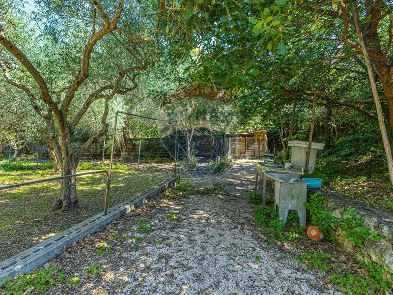 La proprietà si estende su un terreno di oltre 4.000 mq completamente recintato, arricchito da un giardino curato con prato allinglese, alberi da frutto, vigneto e piante ornamentali che creano unatmosfera di totale armonia con la natura.