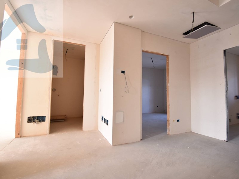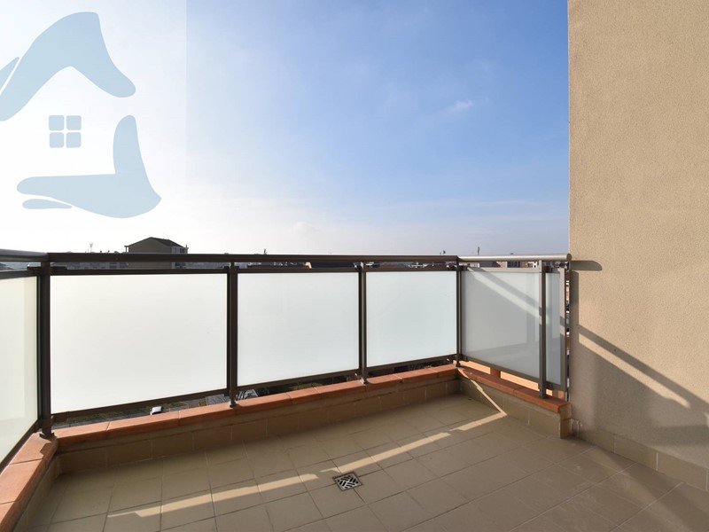 L'ingresso disimpegna la zona giorno e la zona notte. L'ampio soggiorno e la cucina abitabile hanno un terrazzino di pertinenza. Camera da letto matrimoniale e cameretta, entrambe con terrazzino. Due bagni, uno dei quali finestrato.