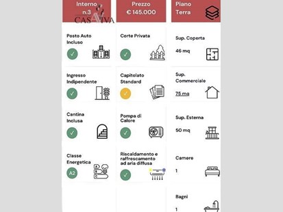 Limmobile si trova in una location con vista panoramica sul mare e sulle montagne e in adiacenza con un parco pubblico. La zona ha un bassissimo inquinamento elettromagnetico, luminoso, acustico ed atmosferico (polveri sottili). E' previsto l'utilizzo di almeno il 50% di energie rinnovabili (sole) con tutte le unità in Classe A. L'edificio rispetta tutti i criteri previsti dalla normativa antisismica. Gli interni vengono continuamente ventilati con aria pulita grazie alla Ventilazione Meccanica Controllata. Le finiture interne sono di assoluto pregio con possibilità di scelta per il cliente. Altre caratteristiche del fabbricato sono: riscaldamento e raffrescamento autonomi, impianto radiante a pavimento, impianto fotovoltaico, cappotto termico, parcheggio privato su lotto chiuso, zona servita da autobus di linea, polizza decennale per gravi difetti, parco pubblico di mq.1500.