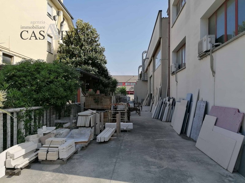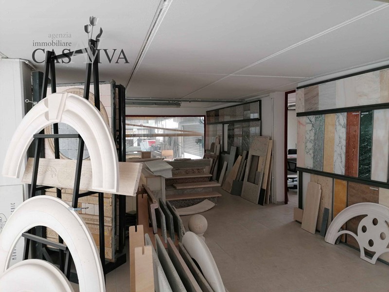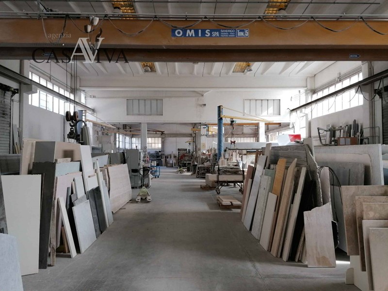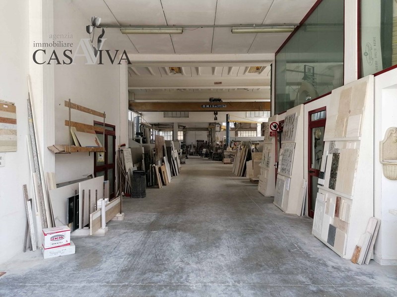 - la zona di ingresso, esposizione, uffici, servizi e ripostigli vari, collegata con la zona di produzione, costituita da un fabbricato in cemento armato dislocato su tre livelli di mq 190 l'uno, oltre un soppalco tra il piano terra ed il primo di circa mq 60; il piano terra ha un'altezza di 5,00 metri, il primo ed il secondo piano hanno un'altezza di 2,70 metri.