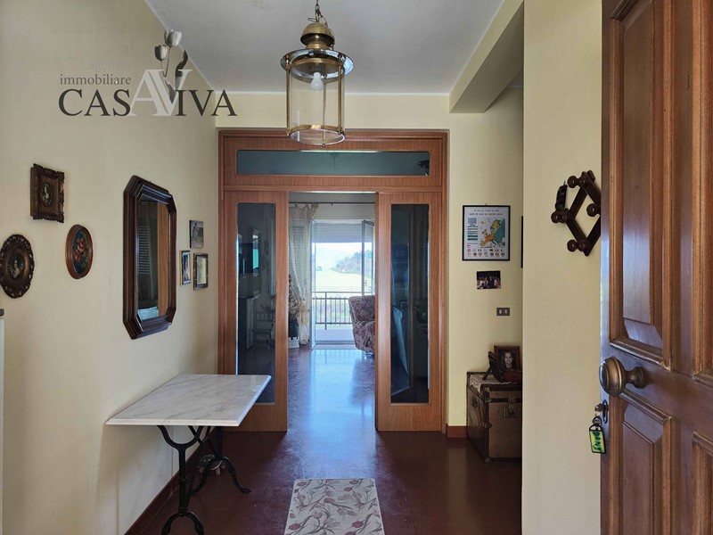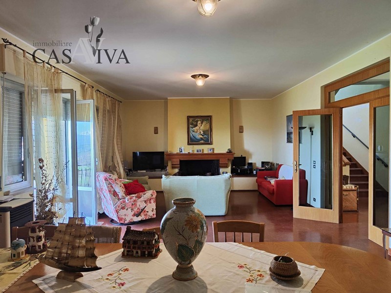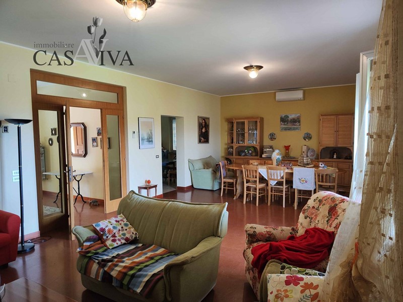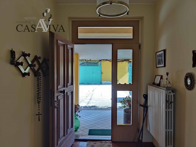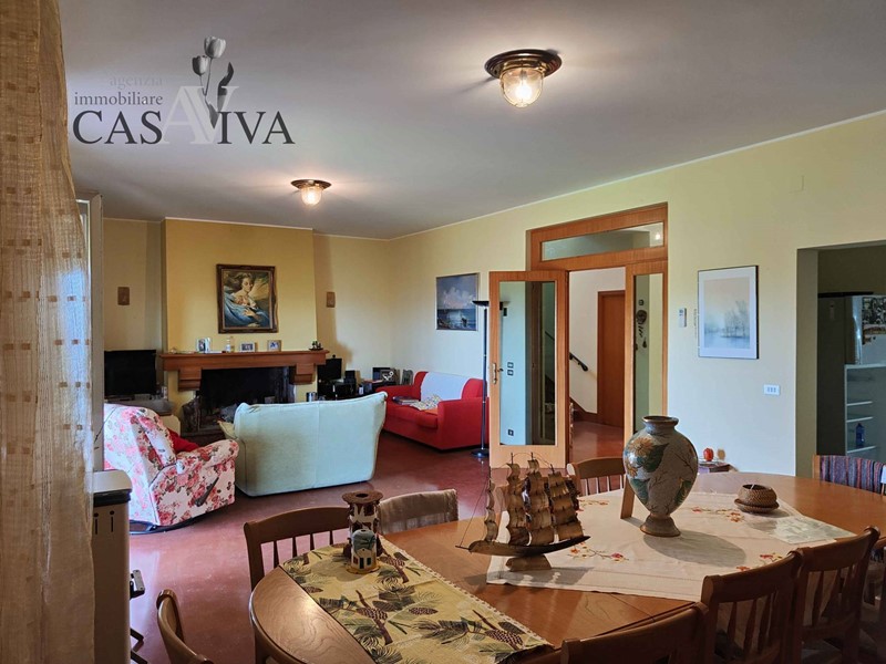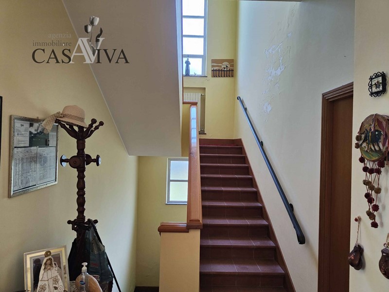 - piano terra delle dimensioni di circa mq 117, ad uso abitazione (zona giorno), composto di: ingresso, bagno, ampio locale soggiorno, cucina-pranzo, lavatoio, scala di collegamento tra i vari piani, loggiato di circa mq 26 e portico a livello di circa mq 24; altezza utile interna 2,95.