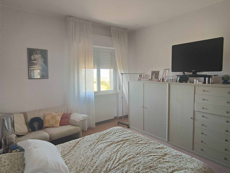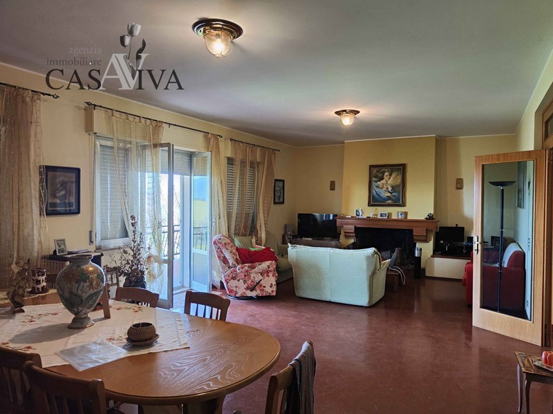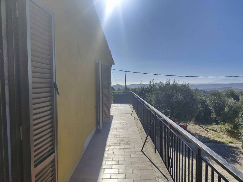 - piano primo, delle dimensioni di mq 112 circa, accessibile tramite la scala esterna posta ad est e destinato ad abitazione, composto di: loggia, ingresso-soggiorno-pranzo con camino, in unico ambiente, cucina, disimpegno, due bagni (di cui uno in camera), tre camere da letto e balcone a livello sul lato sud di circa mq 10; altezza utile interna: mt 2,90.