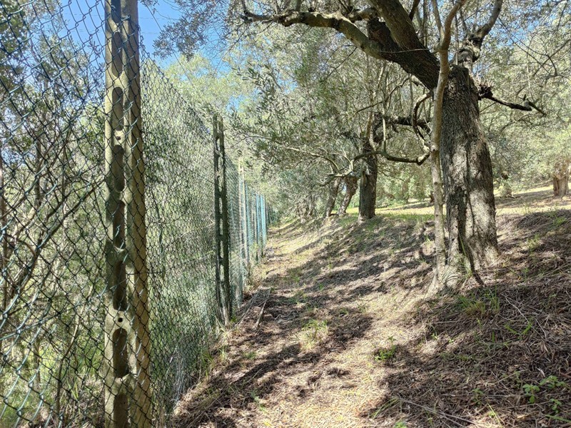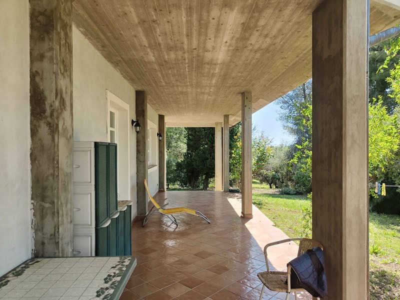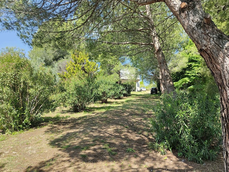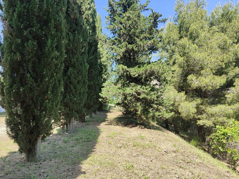 La proprietà è inserita in un lotto di 8.716 mq di terreno agricolo completamente recintato! Il giardino ed il viale che conducono al fabbricato sono piantumati con alberi ad alto fusto (pini marittimi, cipressi, grandi ulivi e oleandri), mentre la restante parte del terreno, quasi completamente rivolto a sud, è piantumato ad ulivi (circa 90 piante) e varie piante da frutto. Nella proprietà è presente anche un pozzo per l'irrigazione.