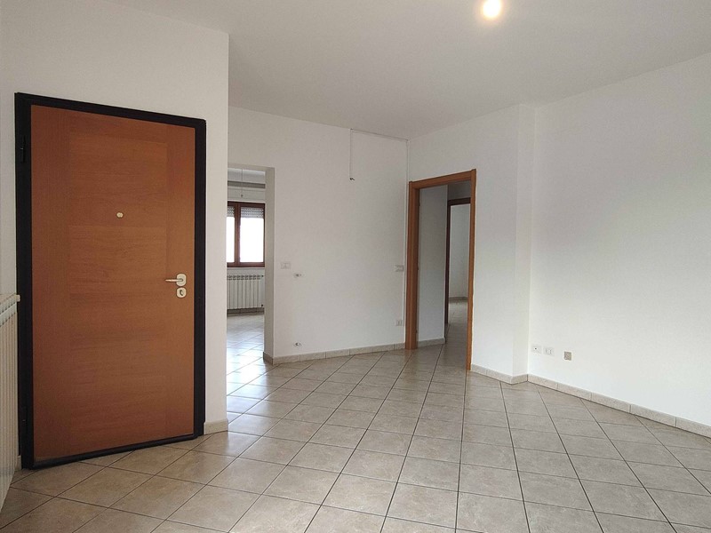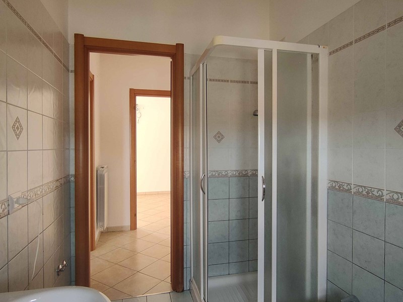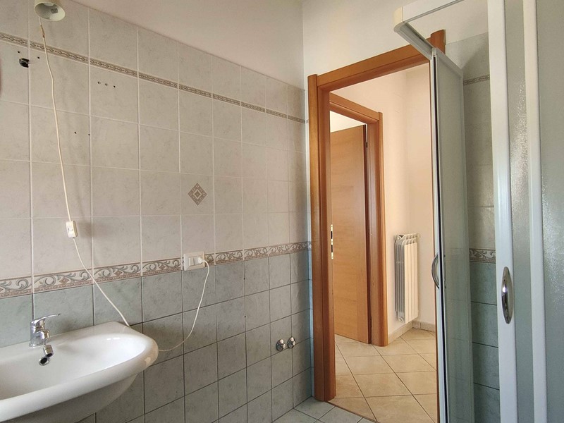 L'abitazione è composta da ingresso su soggiorno servito da un balcone con affaccio a sud, cucina abitabile, disimpegno, due camere (una matrimoniale e una doppia) e due bagni, entrambi con finestra, uno fornito di vasca e l'altro di cabina doccia. Completa la proprietà un comodo garage posto al piano seminterrato, delle dimensioni di circa mq 32.