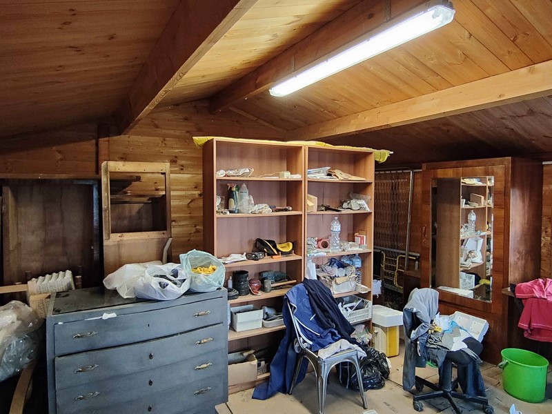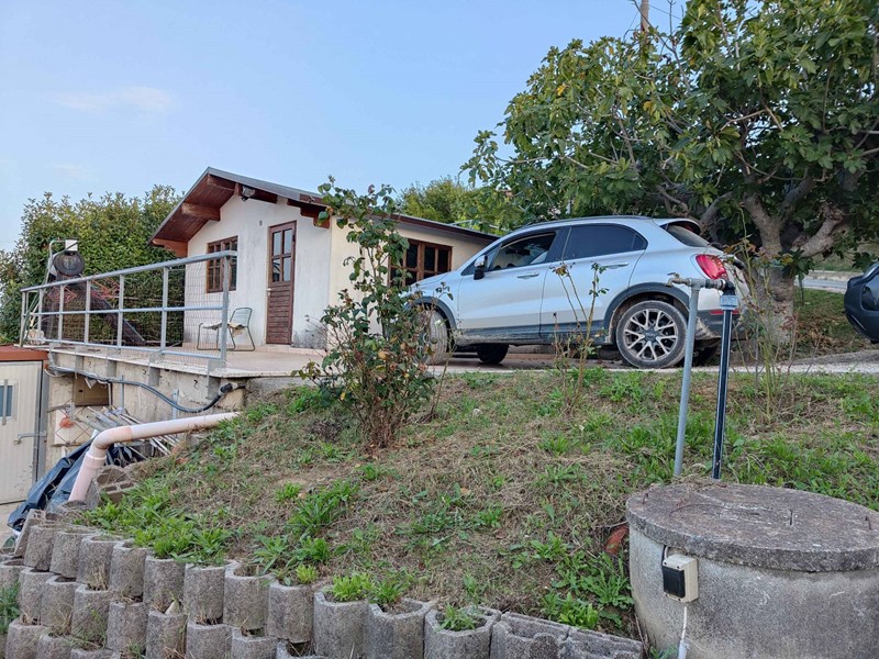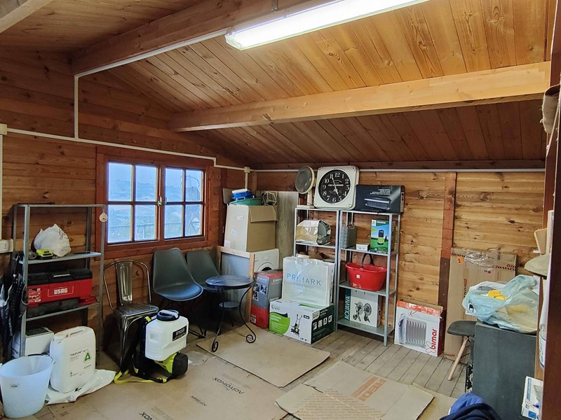 L'immobile è così composto: al piano seminterrato, la cisterna in cemento armato è stata trasformata in un magazzino di circa mq 30; al piano terra, ancorato al solaio di copertura in cemento del magazzino, è presente un prefabbricato in legno con tetto a due falde, delle dimensioni di circa mq 25, ad uso rimessa attrezzi agricoli. Completa la proprietà un terreno circostante di complessivi mq 1.170, destinato ad orto e uliveto.