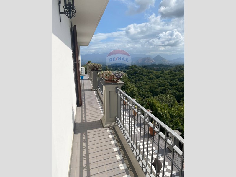 Marzano Appio, frazione Campagnola, immersa nel verde e nella quiete collinare, non molto distante dalle rovine dell'antico Castello di Terracorpo, vendesi splendida villa con giardino privato sviluppata su più livelli. Tramite l'elegante ingresso si accede al piano terra dell'immobile composto da salone con camino, cucina abitabile, due camere da letto, ripostiglio, due bagni, terrazzo e balcone. Il primo piano, in modo analogo, è così composto: salone, cucina abitabile, due camere da letto, doppi servizi, ampia balconata. Al piano seminterrato, invece, vi è il deposito e la cantina. Ampio parco interno piantumato. Cortile con spazi adibiti a parcheggio. Considerata l'ampia metratura ed il taglio dell'immobile, è possibile pensare alla soluzione sia come unica abitazione per nuclei familiari ampi che come villa bifamiliare.