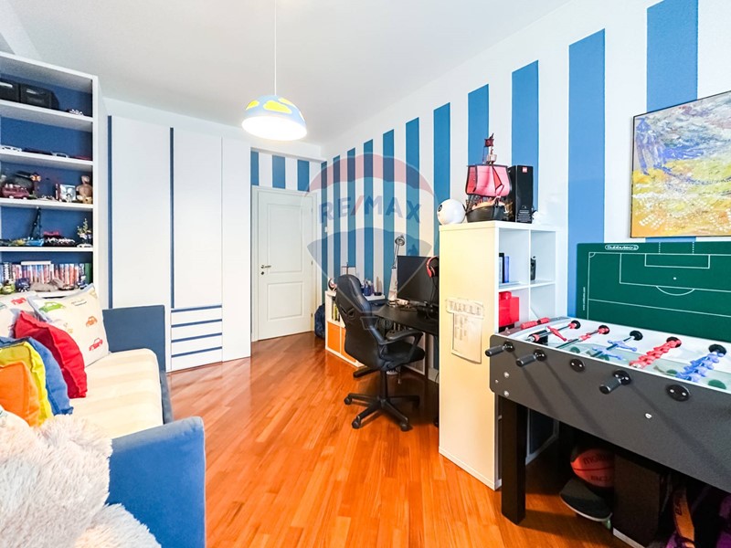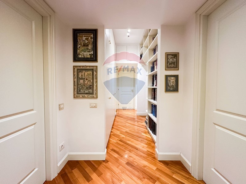 La residenza, posta al sesto piano di uno stabile signorile è così composta: ingresso, ampio e luminoso soggiorno, cucina e lavanderia. Nella zona notte troviamo tre camere da letto, una matrimoniale con bagno en-suite e cabina armadio, una seconda camera matrimoniale, una camera singola con balcone, un ampio studio e due bagni.