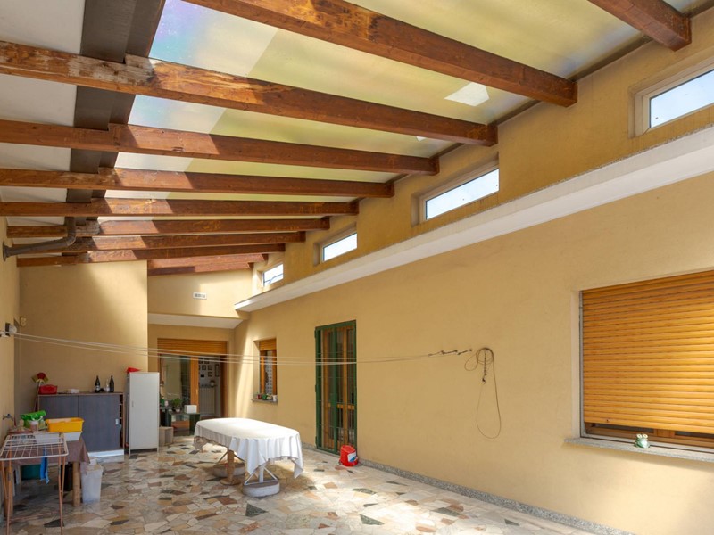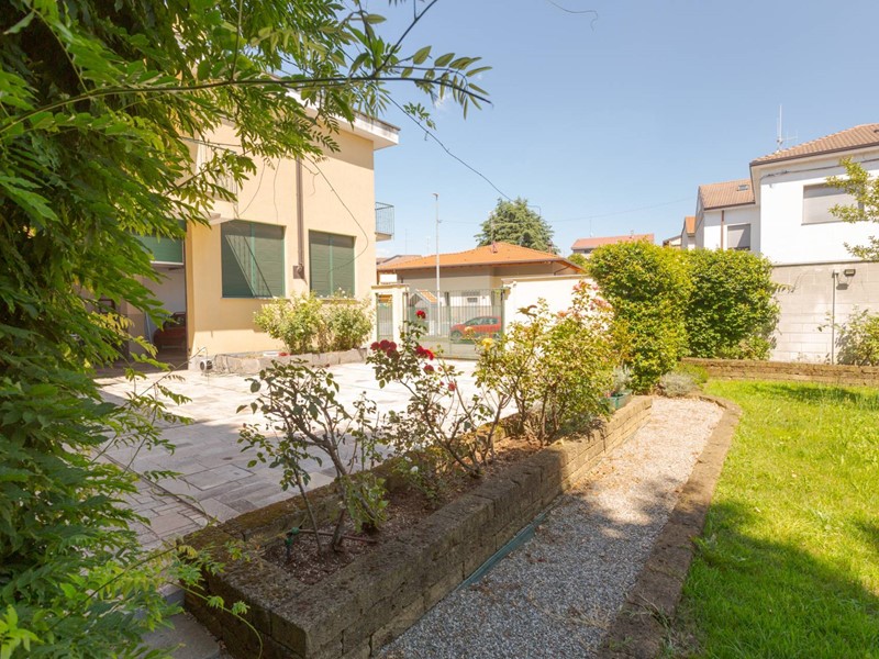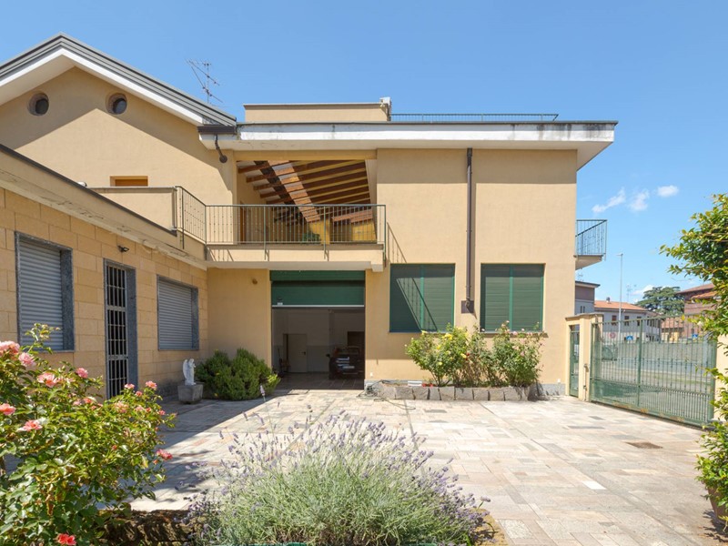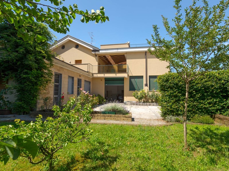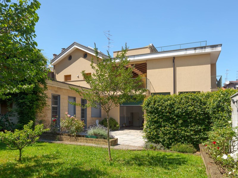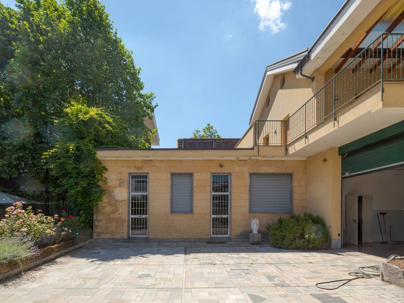 - Piano terra: 2 ampi monolocali rispettivamente di 74 e 52 mq, ufficio di 80 mq, autorimesse e deposito per complessivi 195 mq, cortile di 110 mq e bellissimo giardino finemente piantumato 330 mq circa.