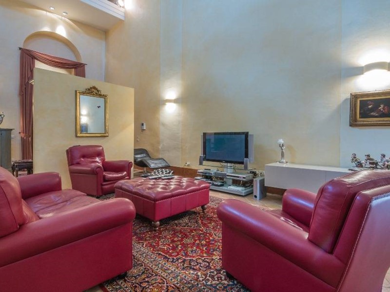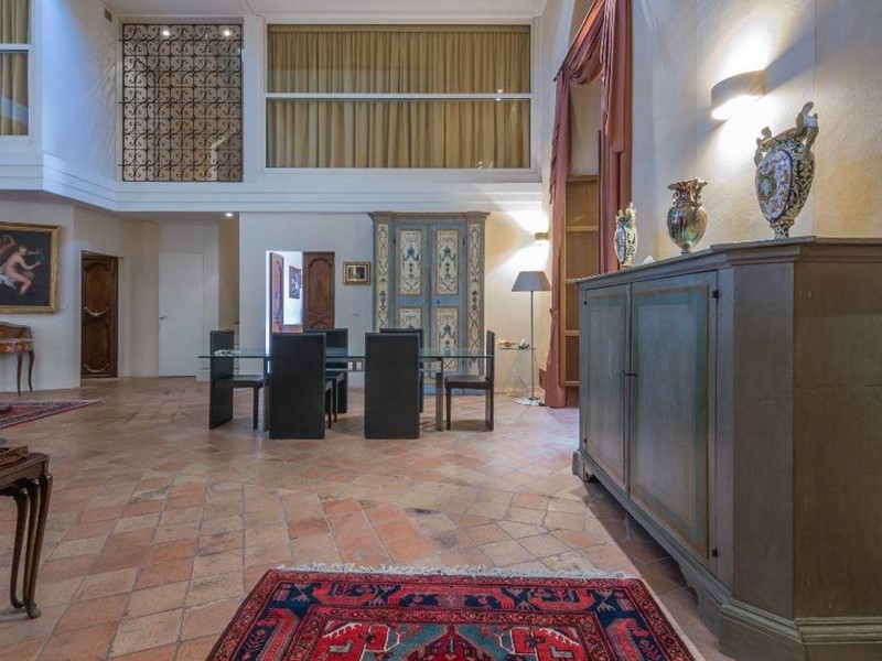 L'esclusiva residenza misura circa 290 mq. ed è stata ricavata nell'originario salone da ballo dell'antico Palazzo, che con i suoi quasi 120 metri quadrati di superficie ed un'altezza pari a 10 mt. circa con copertura a volte a crociera, rappresenta il fulcro principale di tutta l'abitazione sul quale si affacciano i locali del reparto notte ed un ampio soppalco al secondo piano.