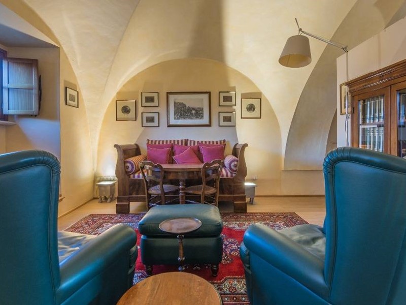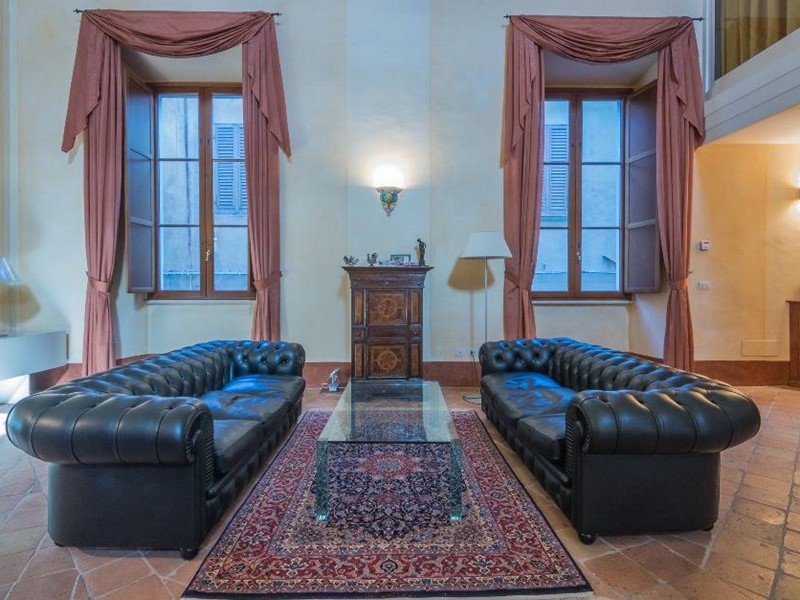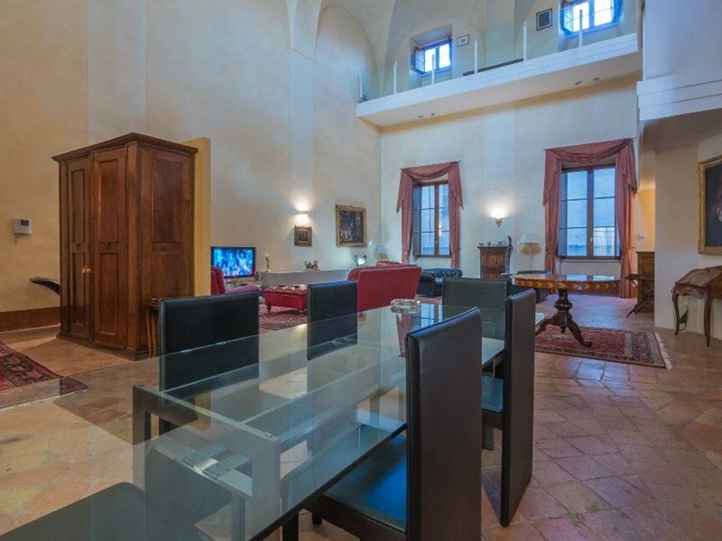 La proprietà è raggiungibile sia dalla splendida scala principale del palazzo che da un ascensore privato che serve internamente anche il piano soppalco e si compone al suo interno di un imponente soggiorno con meraviglioso soffitto a volte a crociera (originario), una cucina abitabile, una camera matrimoniale, un bagno ed un terrazzino pensile al piano nobile; un salotto ed uno studio che all'occorrenza possono essere trasformati in camere da letto oltre ai servizi al piano secondo.