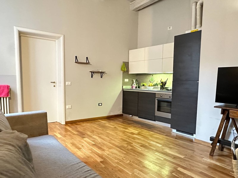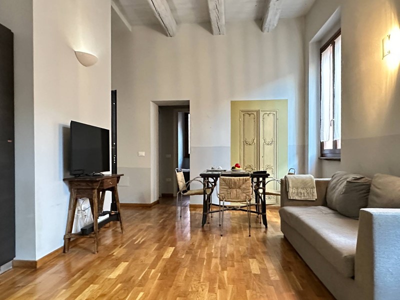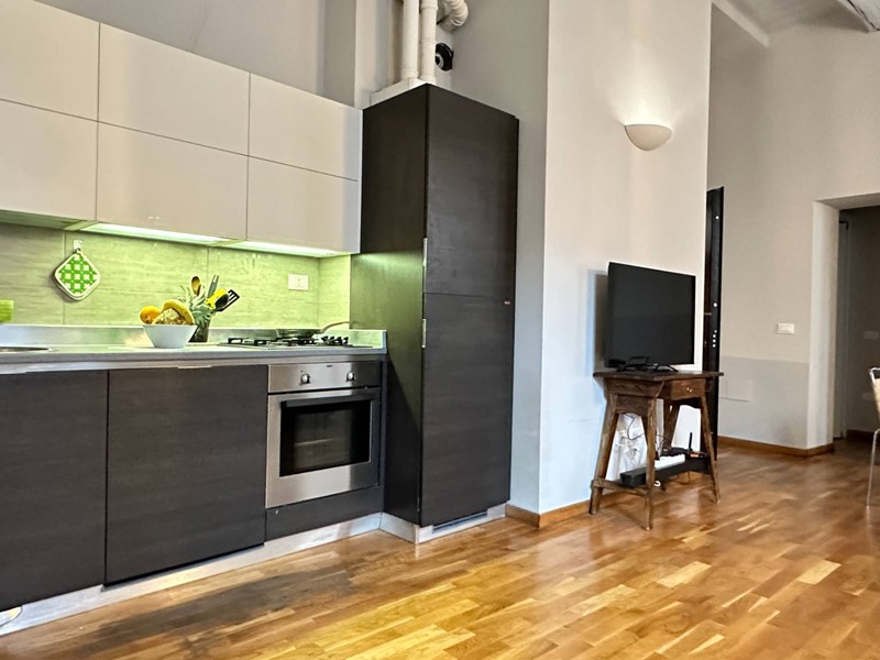 L'appartamento si presenta in perfette condizioni, già parzialmente arredato (armadi e cucina compresi), con ottime finiture, alti soffitti e caratteristiche travi a vista.