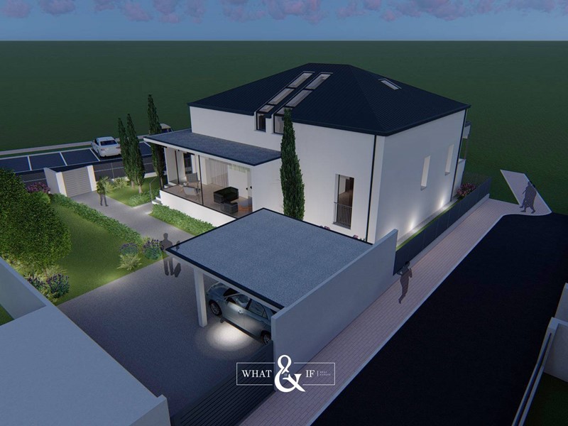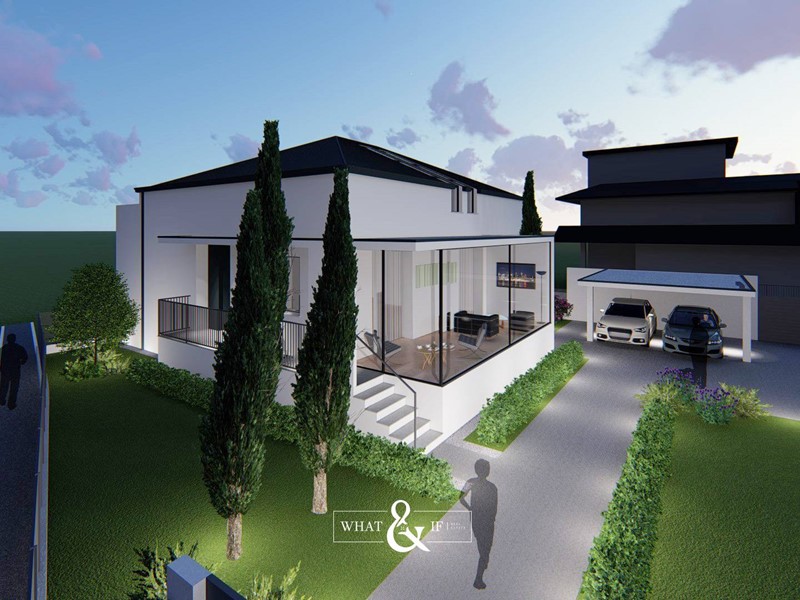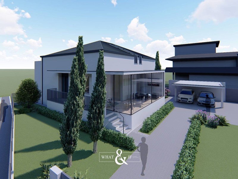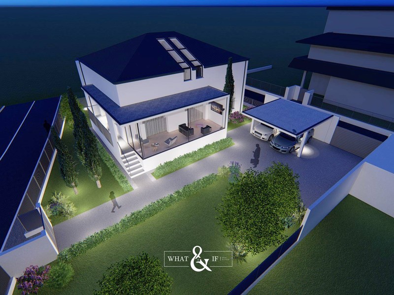 A soli due passi dal Parco e 15 minuti a piedi dal centro di Monza, sul confine tra Monza e Vedano al Lambro, disponiamo di abitazione singola libera su quattro lati con ampio respiro e giardino privato. Progetto all'avanguardia per disposizione degli spazi interni (funzionale per le esigenze abitative familiari attuali) ed esterni, caratterizzata da una suggestiva ed accogliente veranda in vetro, contigua alla zona giorno, che permette di vivere il giardino ed il verde anche nelle stagioni più fredde. Al primo livello troviamo la zona giorno di ampia metratura e con doppia esposizione valorizzata dalla luce naturale che attraversa tutto l'ambiente e finisce nella cucina aperta (con possibilità di chiusura per esempio con parete in vetro) attrezzata su due lati ed abitabile, la veranda in vetro che permette di raddoppiare la metratura dello spazioso salotto, una zona ingresso con guardaroba e bagno ospiti e una zona notte (padronale) con bagno e studio/cabina armadio; al piano superiore invece (completamente personalizzabile anche nella sua divisione interna) una zona comune e due camere da letto dotate di ampie finestre a tutta altezza nonostante l'inclinazione della copertura e dotate di bagno con vasca e doccia di ampia metratura. Al piano interrato troviamo invece la zona tecnica, la cantina e uno spazio adibito a lavanderia/stireria. Il giardino privato e piantumato con piscina, oltre all'autorimessa doppia completano la proprietà. Impianti all'avanguardia, finiture di alto livello come serramenti in legno e alluminio ad alta efficienza (uniform magis), pompa di calore con pannelli fotovoltaici da 6/10 kw con batterie d'accumulo, riscaldamento a pavimento, aria condizionata a scomparsa, serramenti elettrici al piano primo, classe energetica A, costruzione anti-sismica, copertura in ferro. Parquet in tutti gli ambienti (tranne i bagni e vani tecnici o di servizio), arredamento nuovo di design e su misura (richiesta a parte). Pronta da abitare, consegna immobile in sei/dodici mesi dal preliminare, atto tra tre anni (contratto "Help to buy").