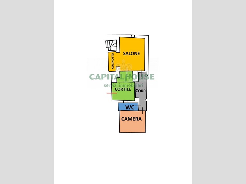 Il bilocale è composto da: salone con cucinotto, camera matrimoniale e bagno con doccia. Completa la soluzione un cortile privato di circa 15mq e un posto auto di proprietà esclusiva. L'immobile si presenta in buono stato in quanto sono stati effettuati lavori di ristrutturazione nel 2010 per l'edificio e per gli interni.