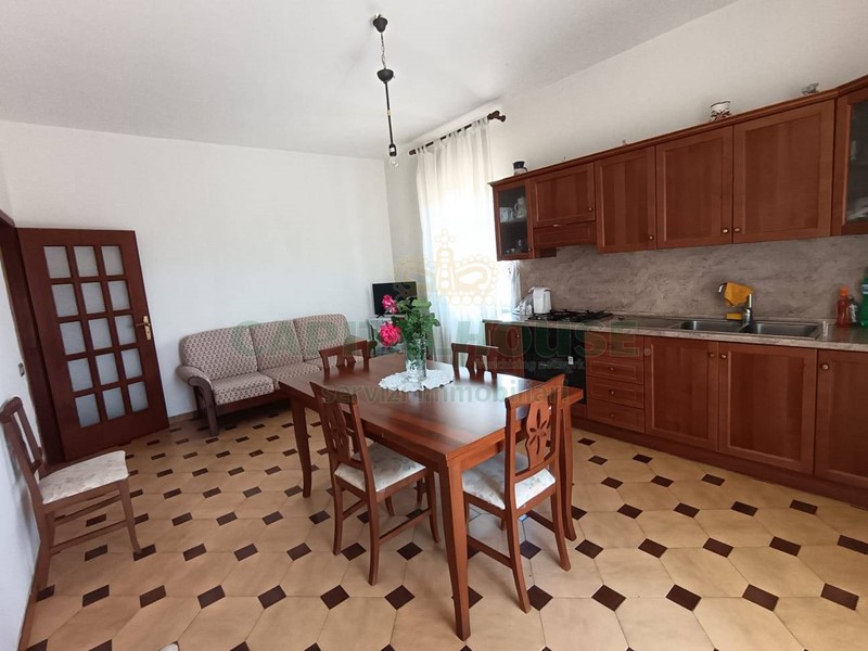 Al piano seminterrato troviamo un appartamento totalmente ristrutturato composto da salone, cucina abitabile, due camere, un bagno e un terrazzo di circa 50mq, non arredato;
